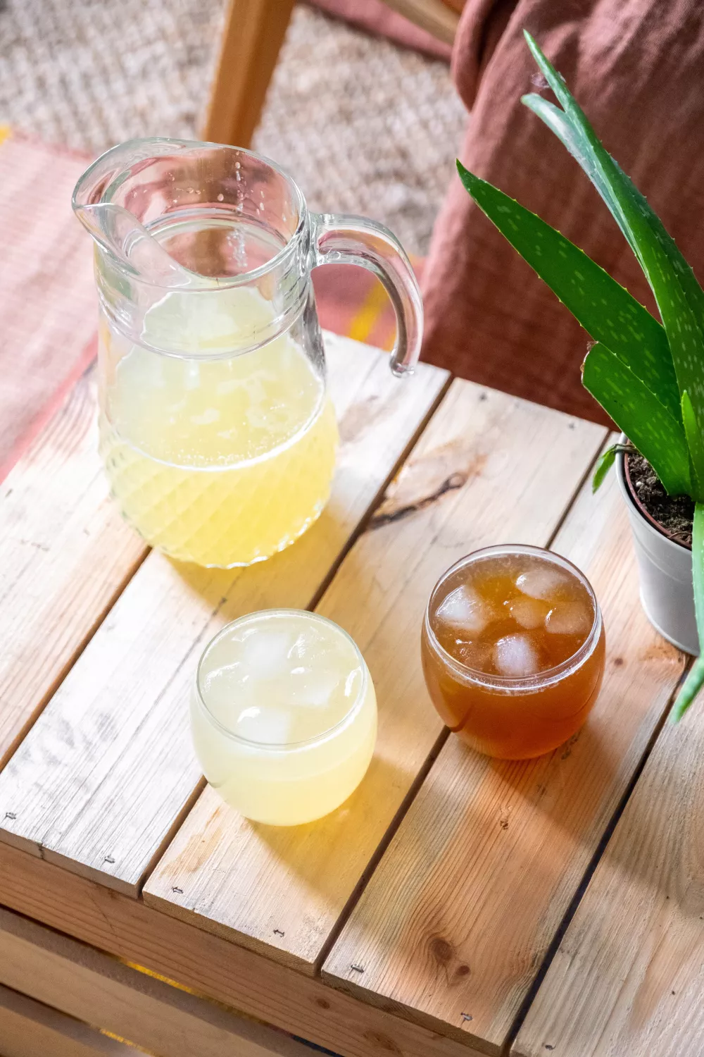 Vul een glas met ijsblokjes en schenk er de limonade over alvorens te serveren.