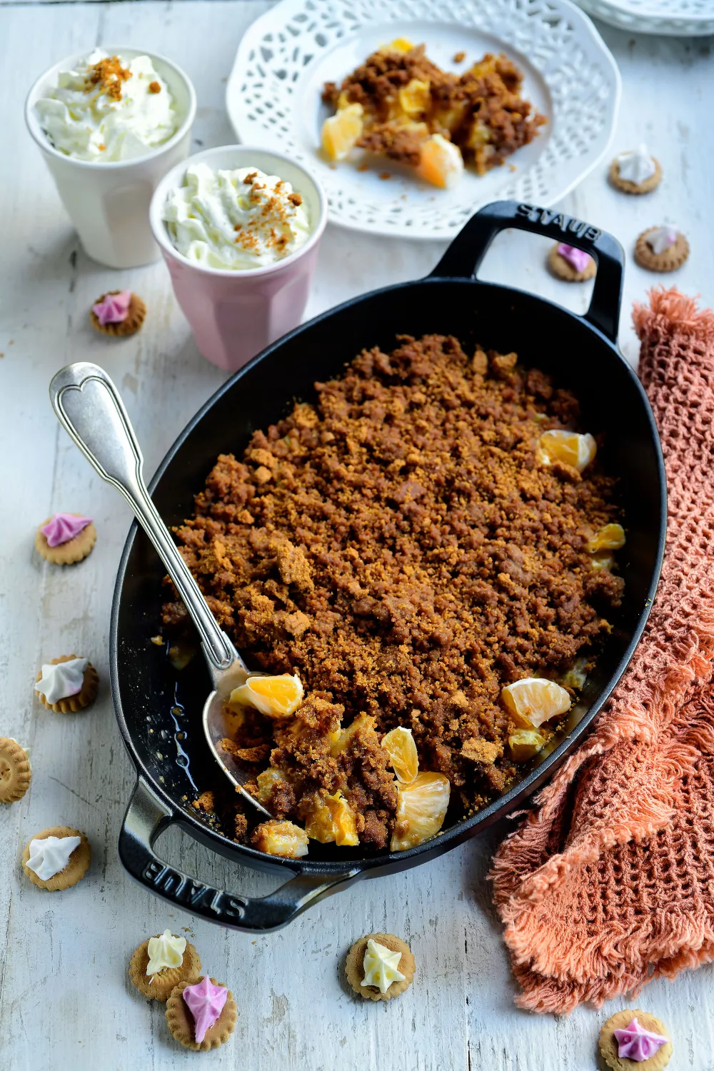 Crumble van speculaas met mandarijntjes