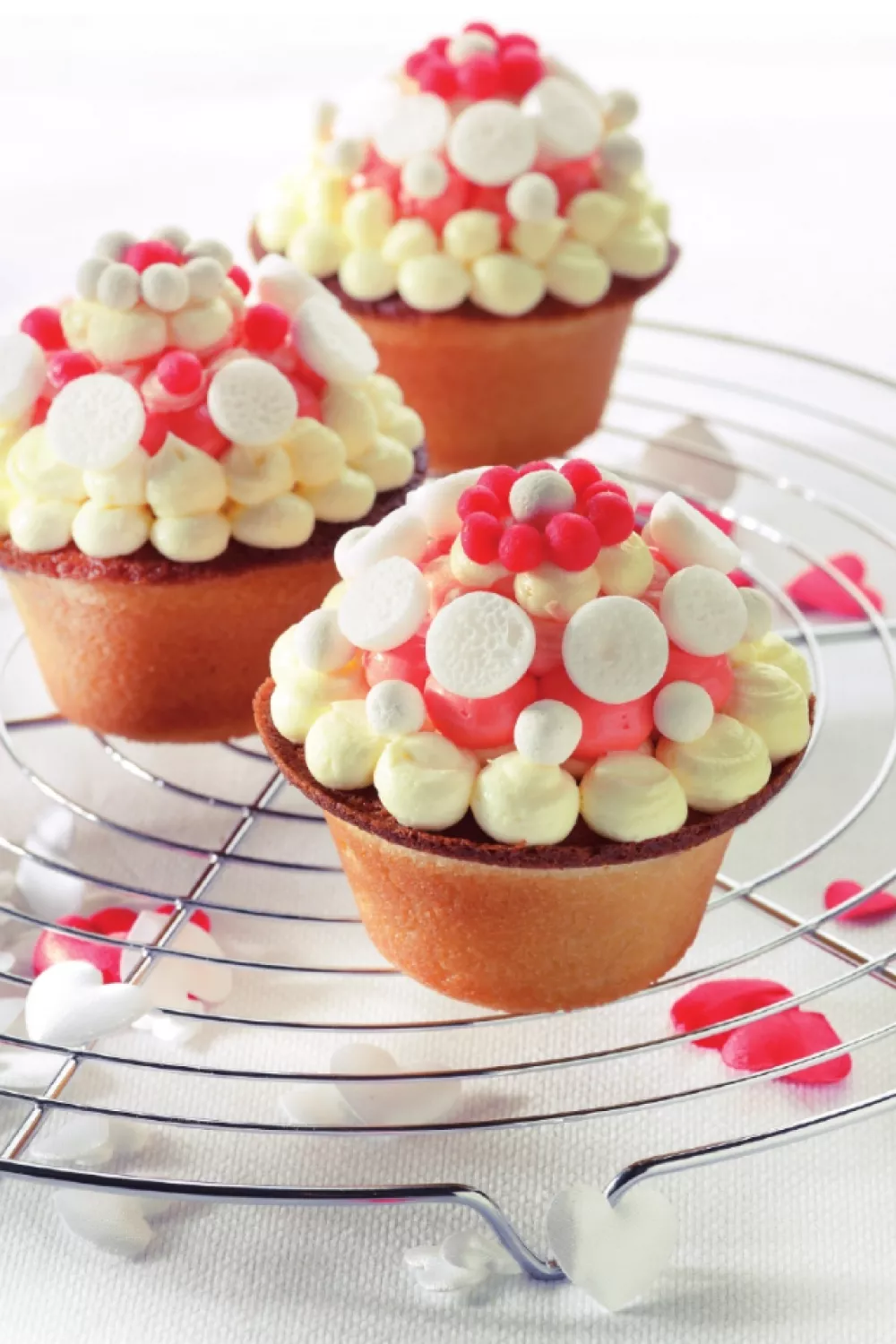 Luchtige cupcakes met een zachte suikercrème en stukjes rood en blauw fruit, ideaal als vrolijke traktatie voor feestjes of een lentepicknick. Het eenvoudige beslag meng je snel, bak je in de oven en werk je af met een romige boterroom van mascarpone en poedersuiker die je met een spuitzak opspuit. Versier met marsepein, smarties of gesmolten chocolade voor extra kleur en textuur.