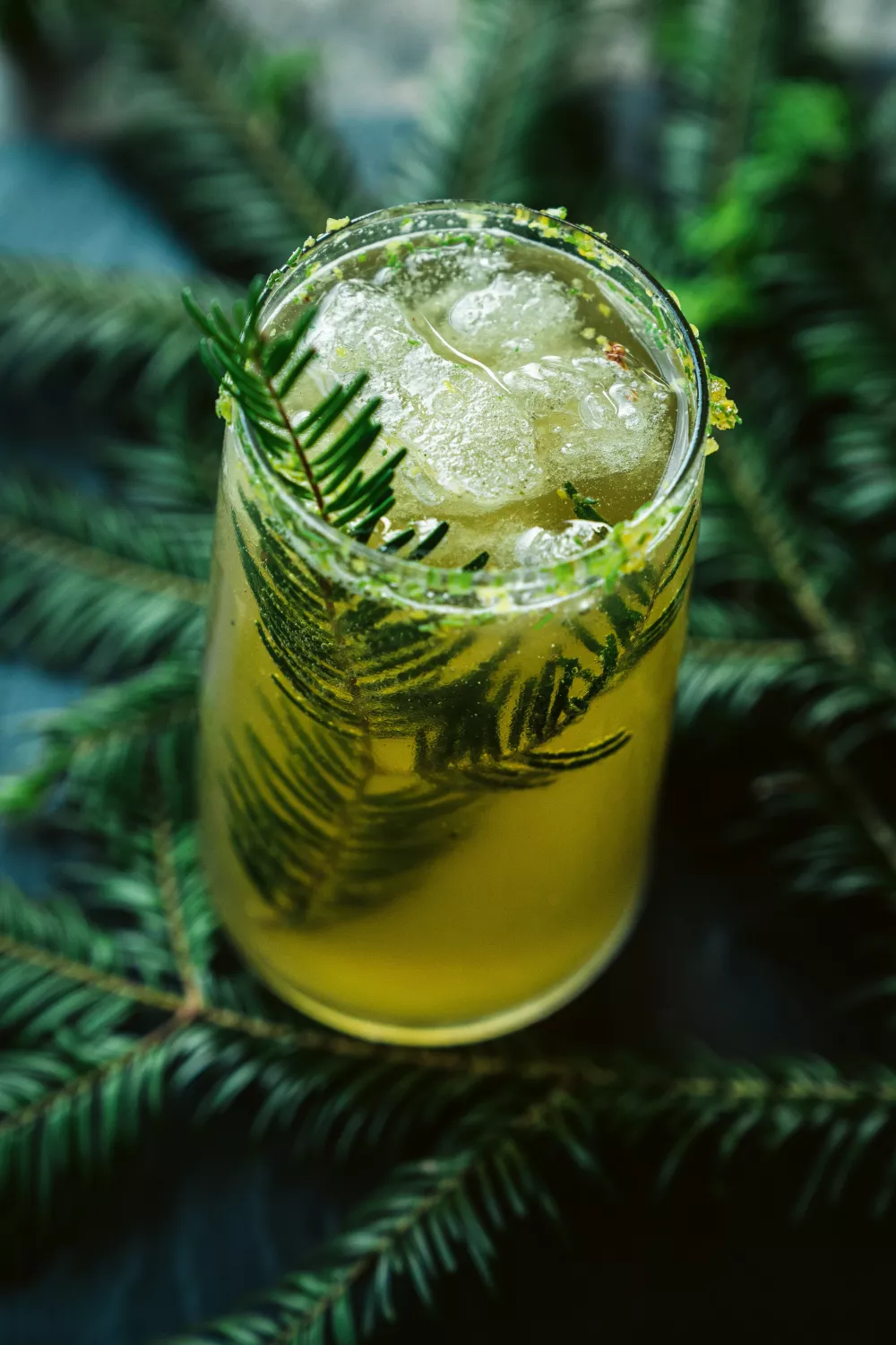 Deze verfrissende douglasspar mocktail combineert zelfgemaakte dennennaalsiroop, citroenzeste en bruisend water tot een aromatische, feestelijke dorstlesser. De siroop wordt zacht getrokken van afgeritste naalden, gepureerd in de blender en door een fijne zeef gehaald voor een zuivere, frisse smaak. Ideaal voor een zomeravond of winterse borrel, afgewerkt met een suikerrand van citroen en fijngesneden naalden van douglasspar.