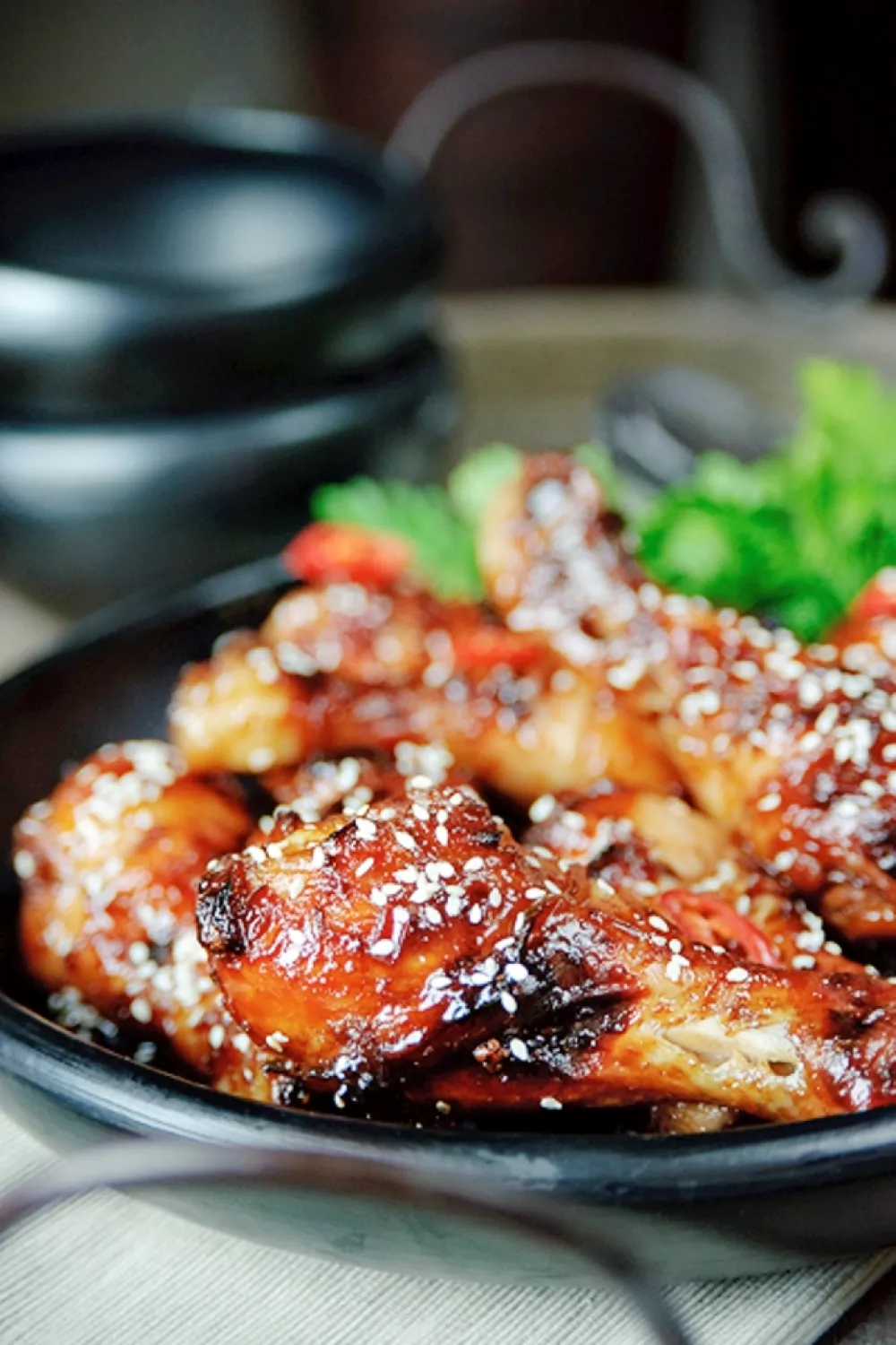 Sappige kipdrumsticks met een glanzende lak van honing, sojasaus en sinaasappel krijgen pit van gember, knoflook, chili en Chinese vijfkruiden. Na uren marineren en regelmatig bedruipen in de oven worden ze kleverig en gekaramelliseerd, ideaal als ovengerecht voor doordeweeks of een gezellige weekendtafel. Droge sherry, sesamolie en vissaus geven diepe umami, afwerken met sesamzaadjes maakt het feestelijk in elk seizoen.