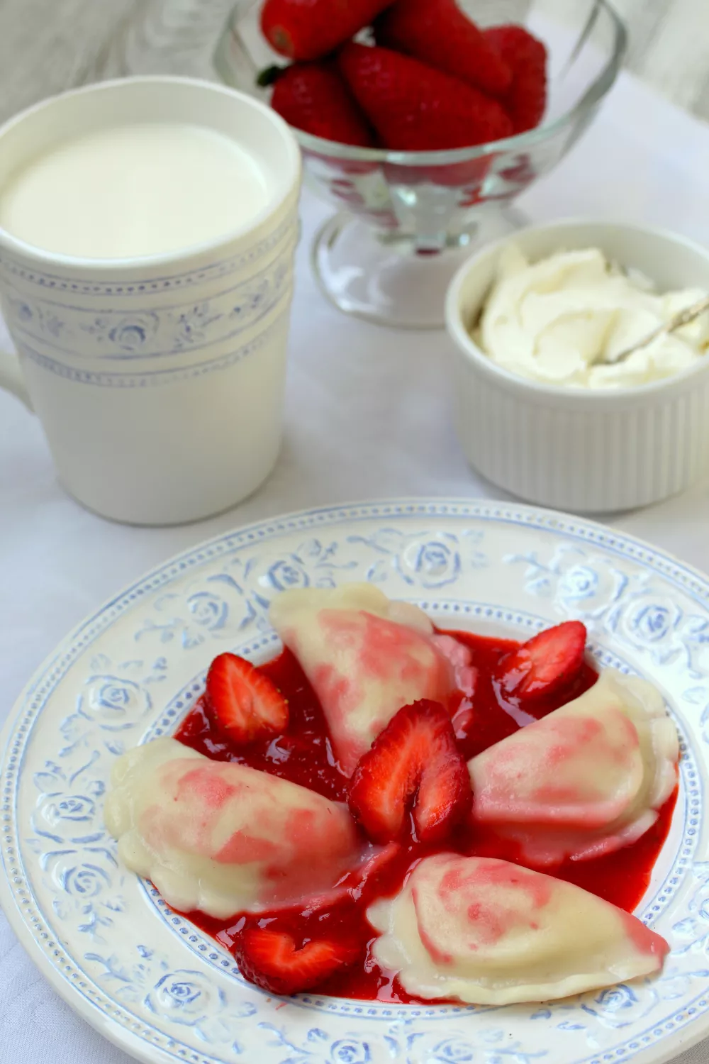 Dumplings met cottage cheese en aardbeiensaus