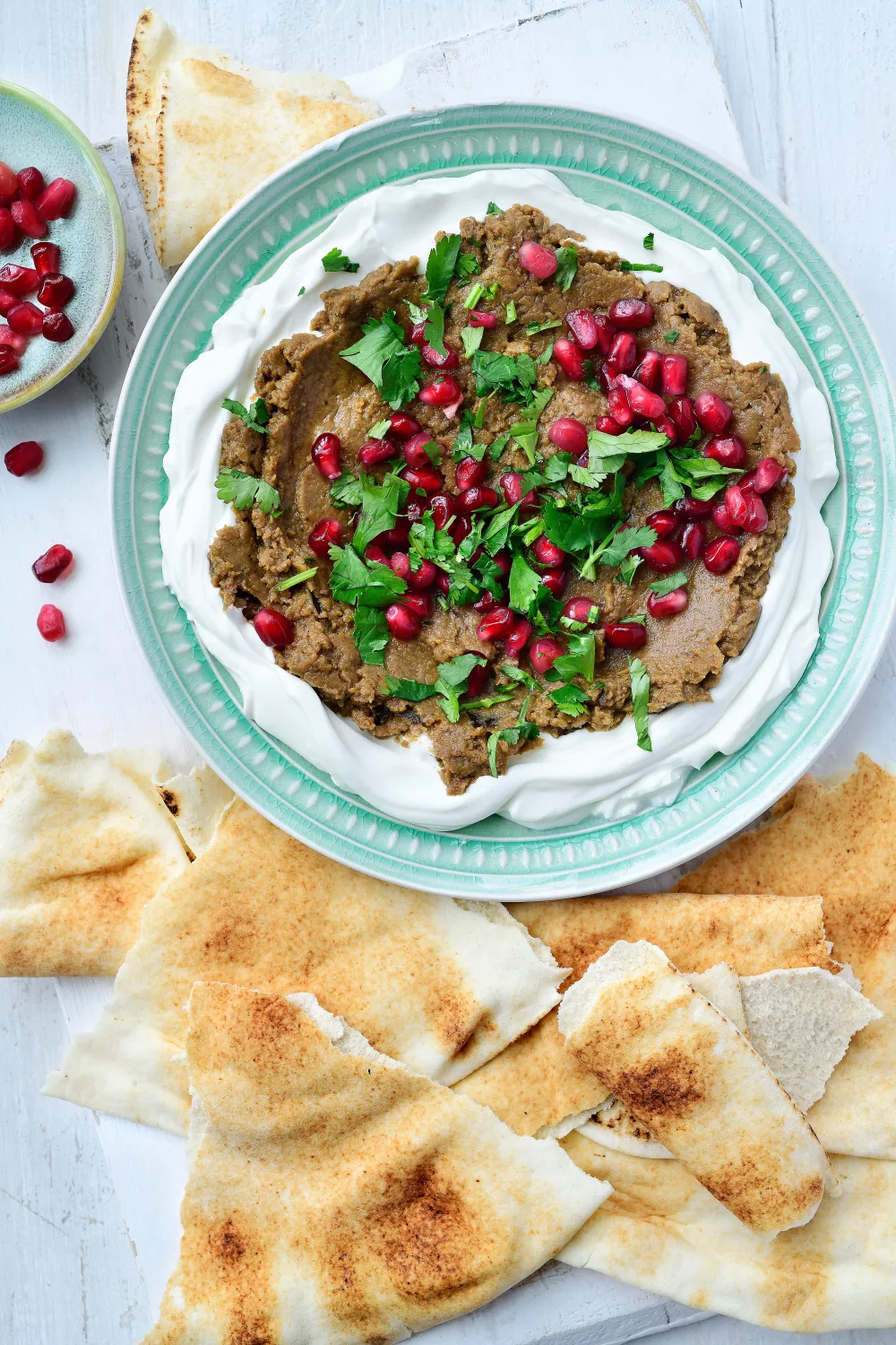 Serveer met het platbrood als dip of als onderdeel van een mezzetafel.
