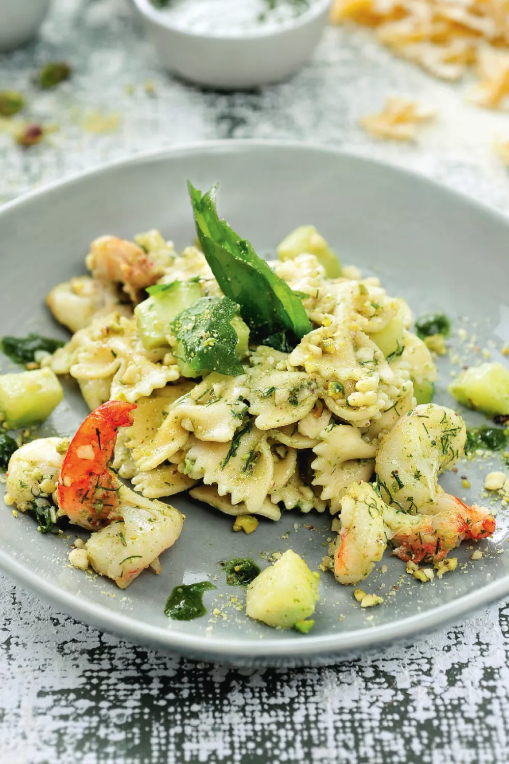 Stappenplan om recept “Farfalle met scampi, courgette en pesto van pistache” te bereiden