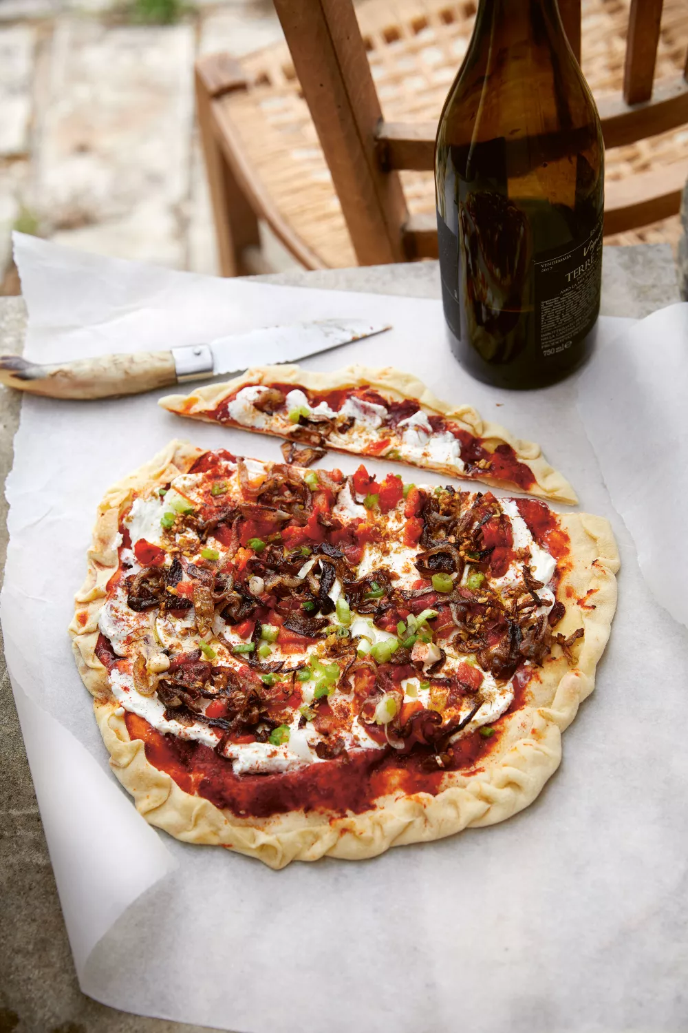 Stappenplan om recept “Flatbread met labneh en gebakken uien” te bereiden