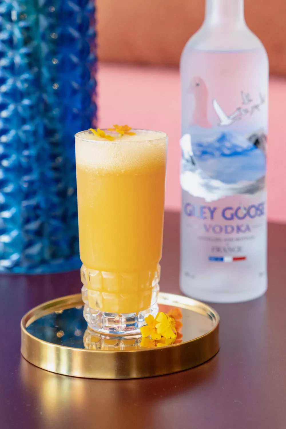 Deze Fluffy Cosmo combineert frisse cranberry en scherp citroensap met de zachte warmte van Grey Goose vodka voor een fruitige, licht schuimende cocktail. In de blender wordt hij romig en ijzig van textuur, met stukjes sinaasappel die voor extra frisheid zorgen. Serveer in een longdrink en werk af met een eetbaar bloemetje voor een zomerse, feestelijke touch.