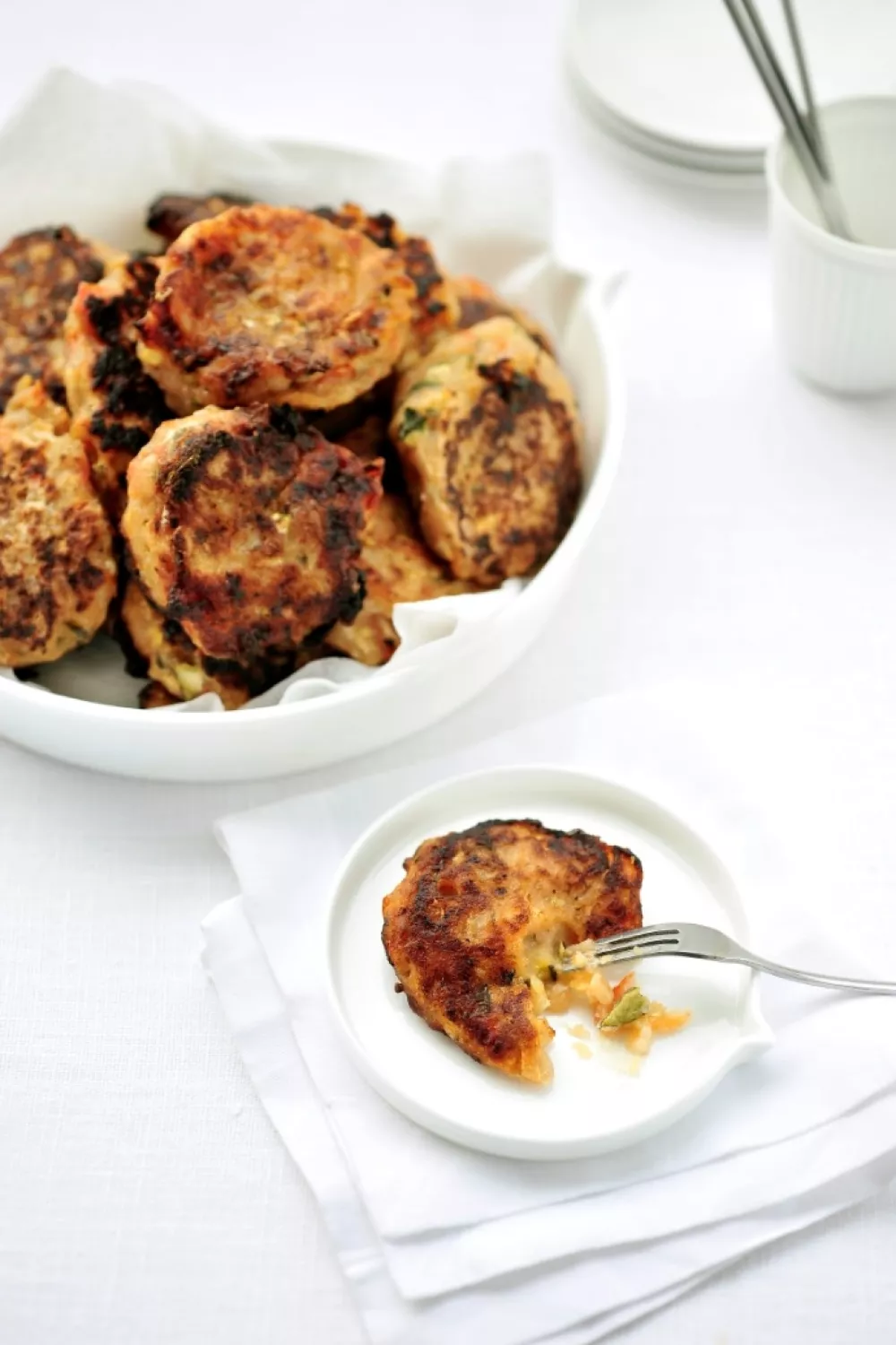 Verhit een flinke hoeveelheid olijfolie in een bakpan en schep een eetlepel van het mengsel in de pan.