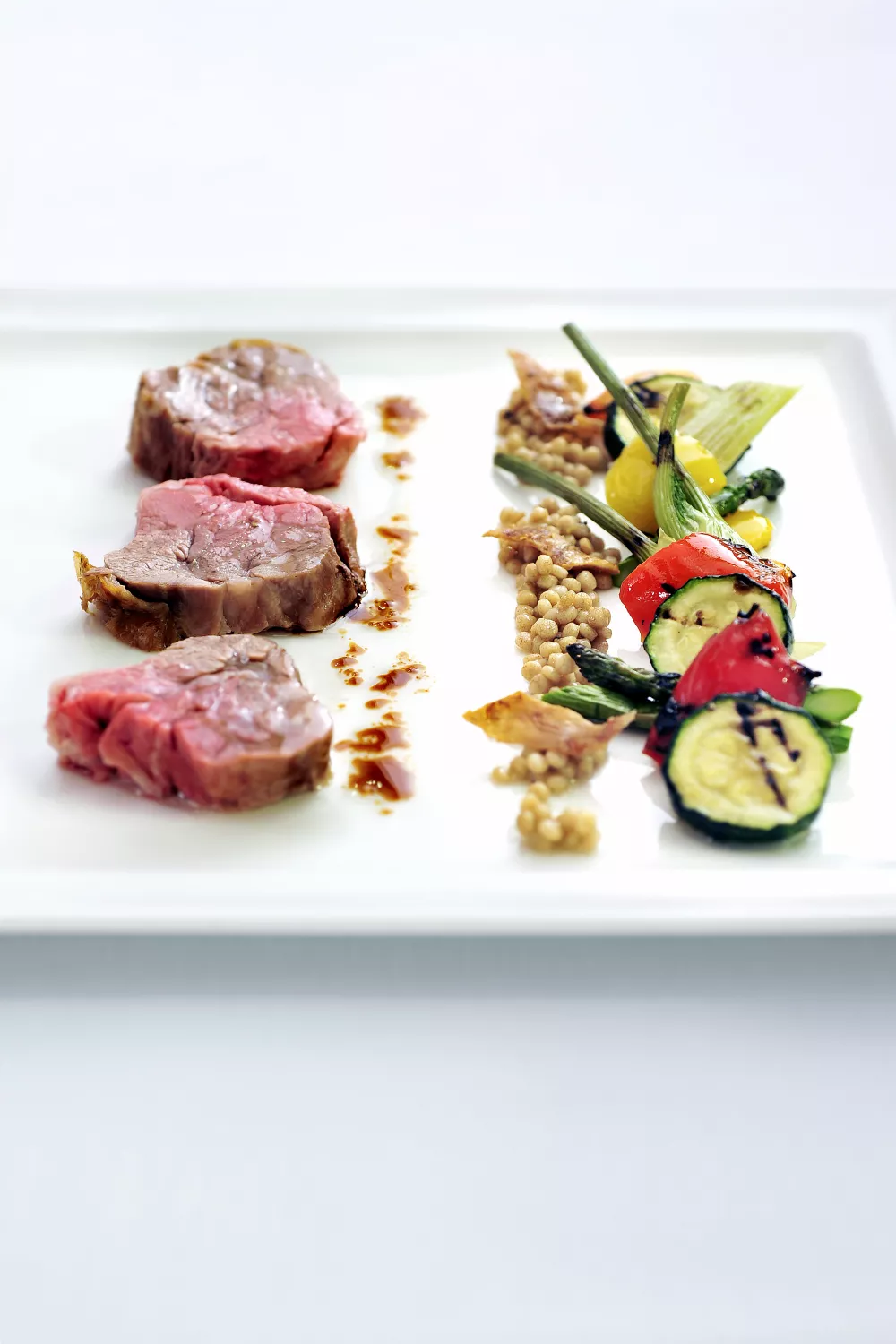 Een sappige gebraden lamsschouder met diepte van lamsbeenderen en een lichtgekruide jus, geserveerd met gegrilde courgette, paprika, asperges, prinsessenboontjes en een frisse quinoa. De beenderen geven de saus extra smaak en door het vlees even te laten rusten blijft het heerlijk mals. Perfect voor zomerse diners of een feestelijk familie-etentje, eenvoudig te maken in oven en op de grill.