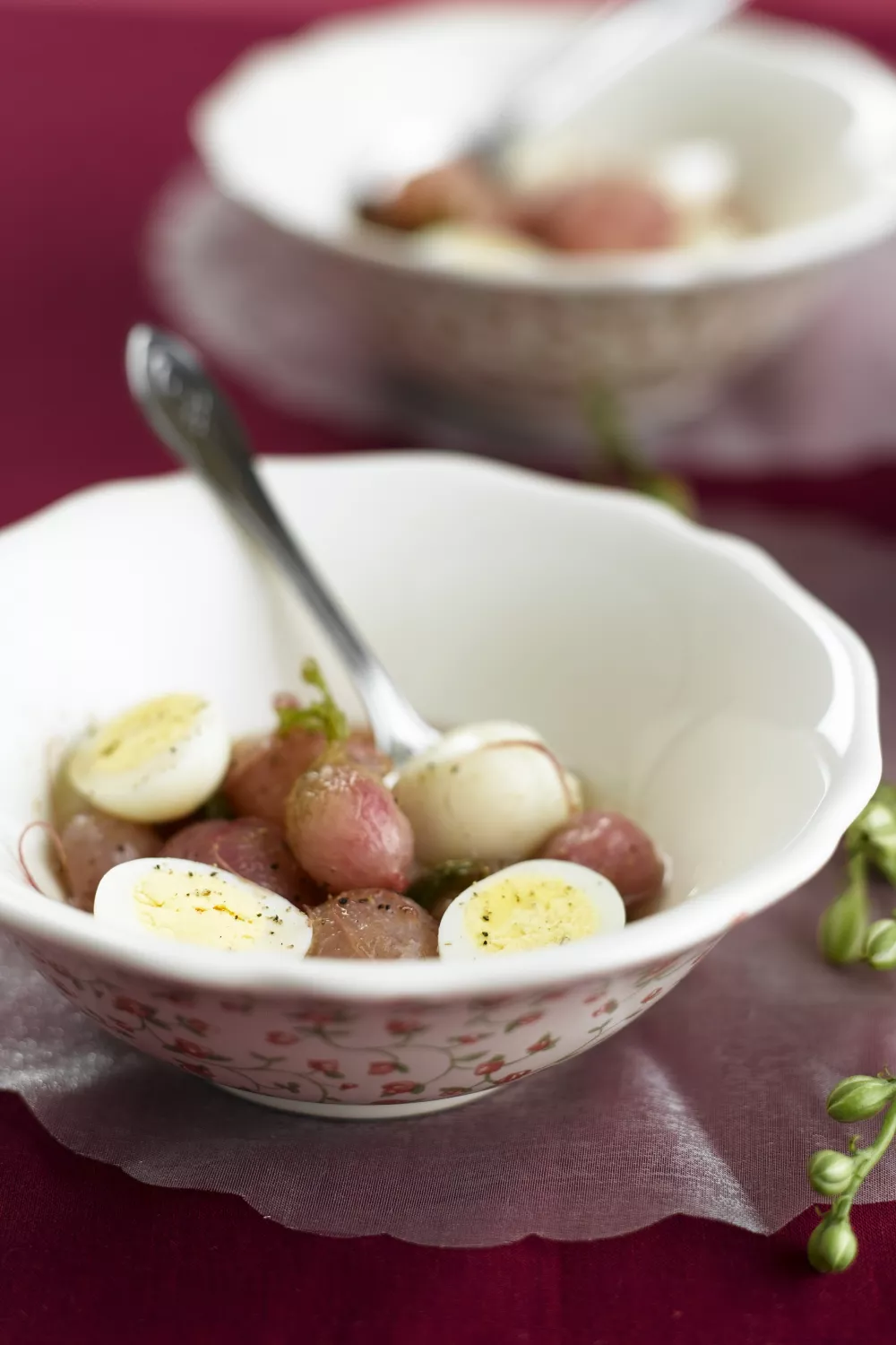 Geglazeerde radijsjes met kwarteleitjes zijn een fris en feestelijk bijgerecht dat perfect past bij lente- en zomermenu's. De radijsjes worden kort in water met boter en suiker gekookt tot het vocht inkookt en ze licht karamelliseren, waardoor hun pittige bite zachter en glanzend wordt. Warm geserveerd vormen ze een elegant aperitiefhapje of bijgerecht bij gegrild vlees.
