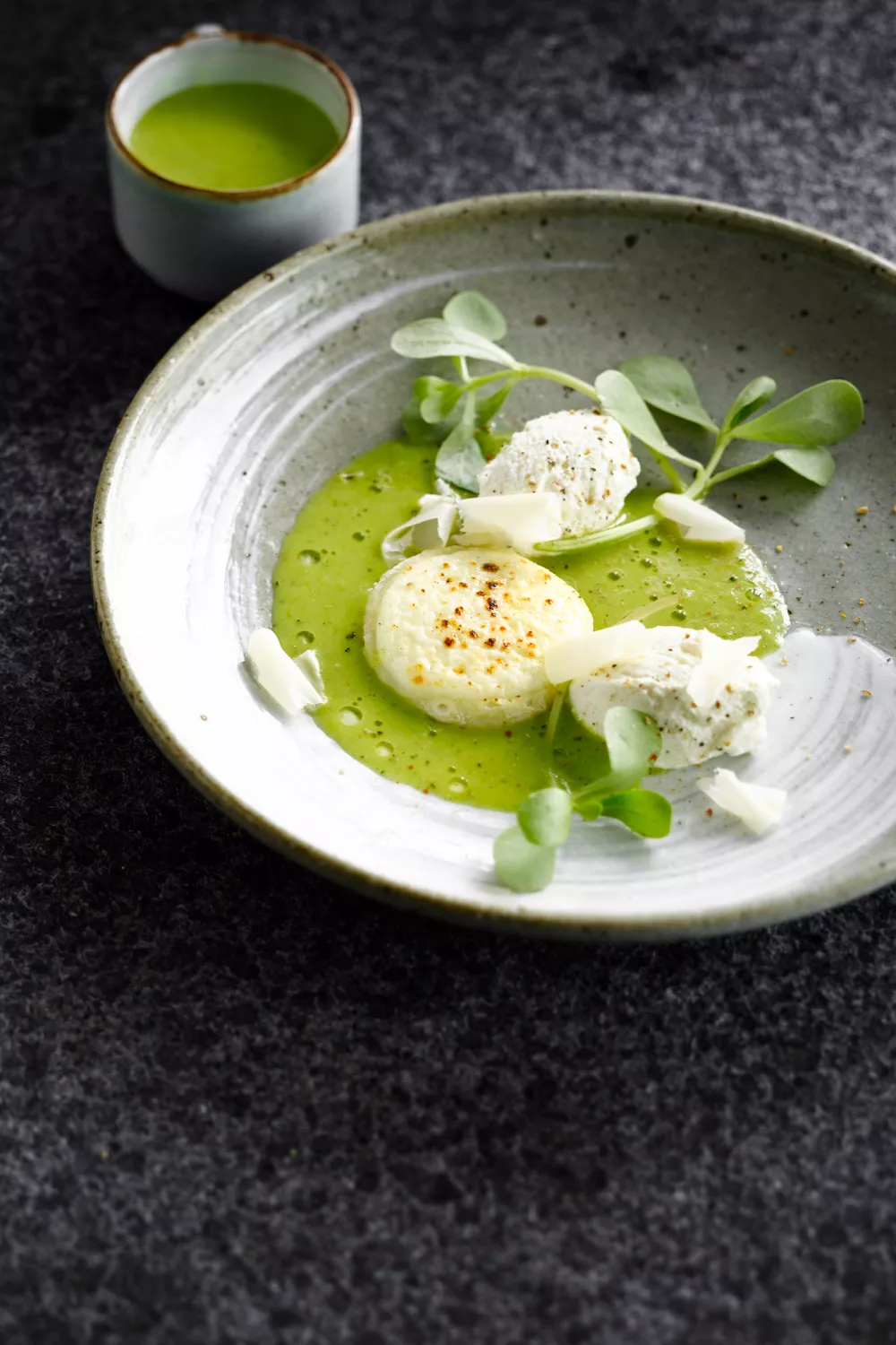 Stappenplan om recept “Gegratineerde geitenkaas met groene saus” te bereiden