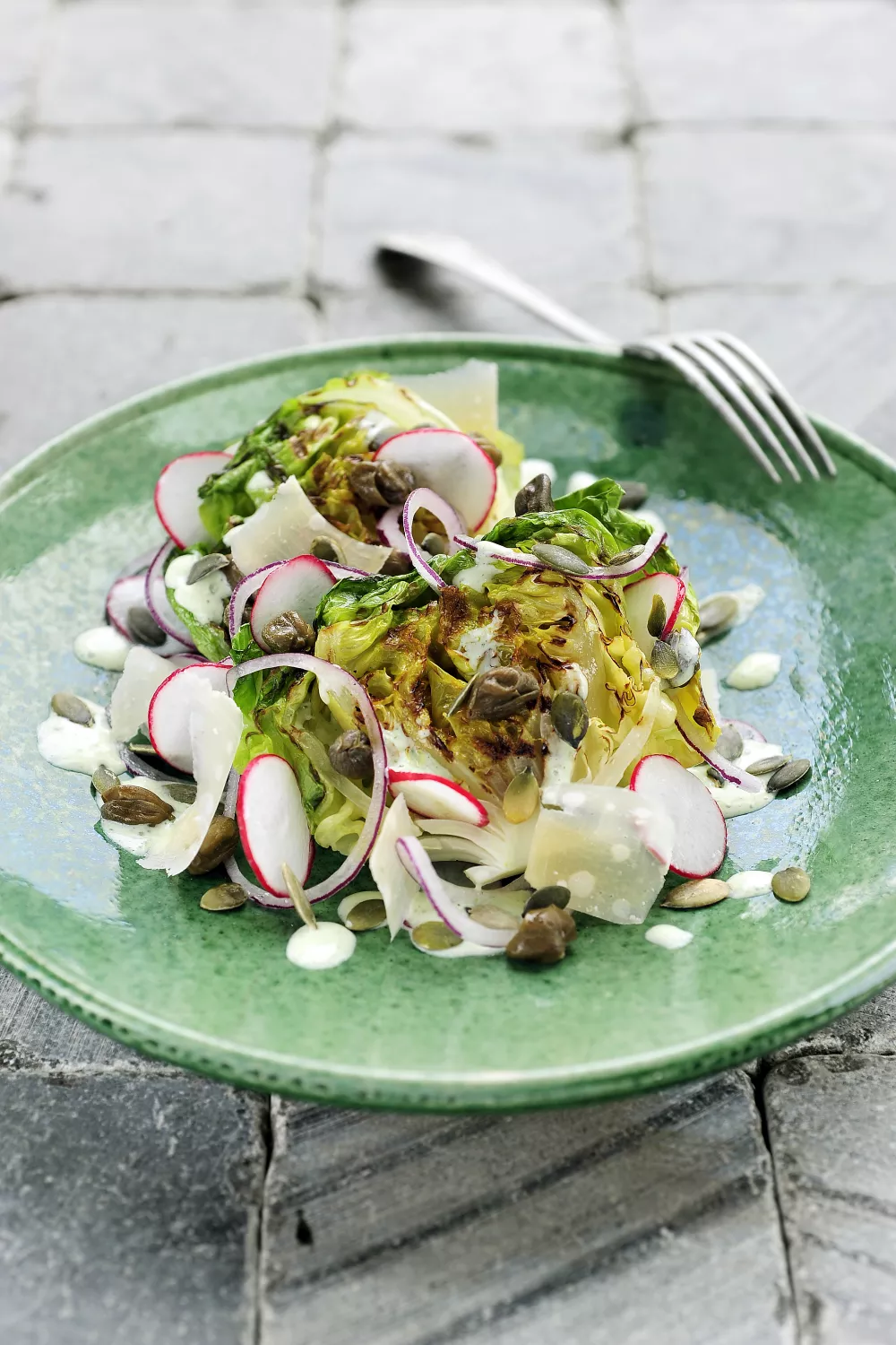 Gegrilde kropsla met een parmezaan-vinaigrette