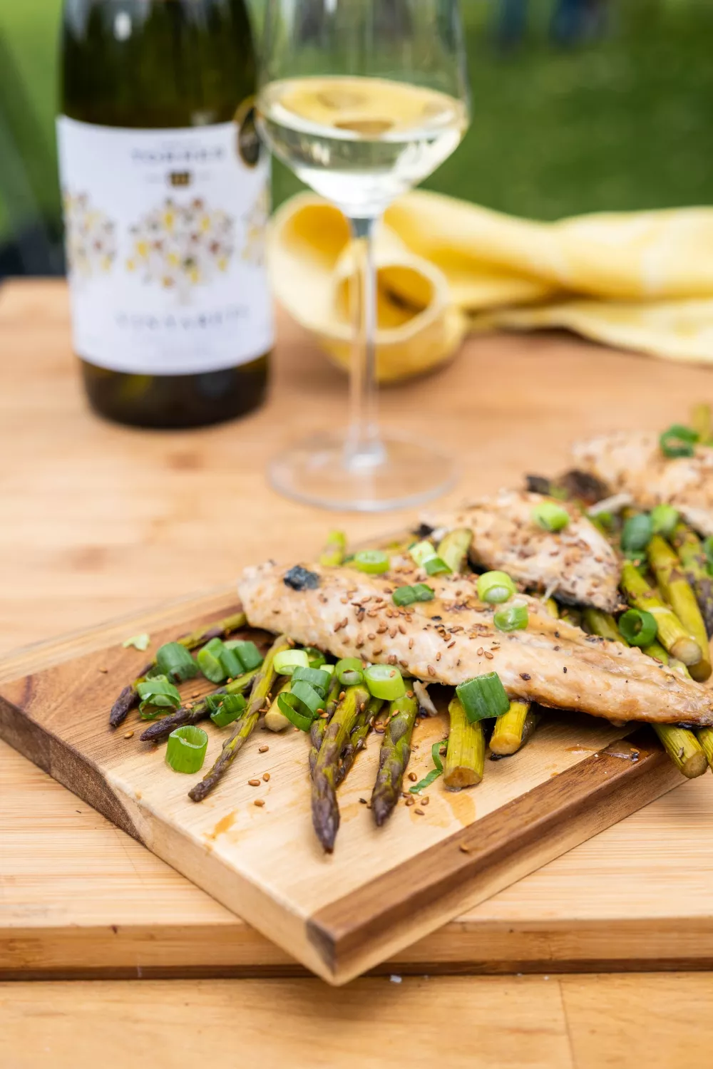 Frisse, rokerige gegrilde makreel met knapperige groene asperges en een misomarinade vol umami is ideaal voor een zomerse barbecue of lenteavond op het terras. De combinatie van mirin, rijstazijn, rode miso en geraspte gember geeft diepte, terwijl geroosterde sesamzaadjes, lente-ui en limoen voor een frisse toets zorgen. Kort marineren en direct grillen op de velkant behoudt de sappigheid van de vis en laat de asperges mooi karamelliseren.