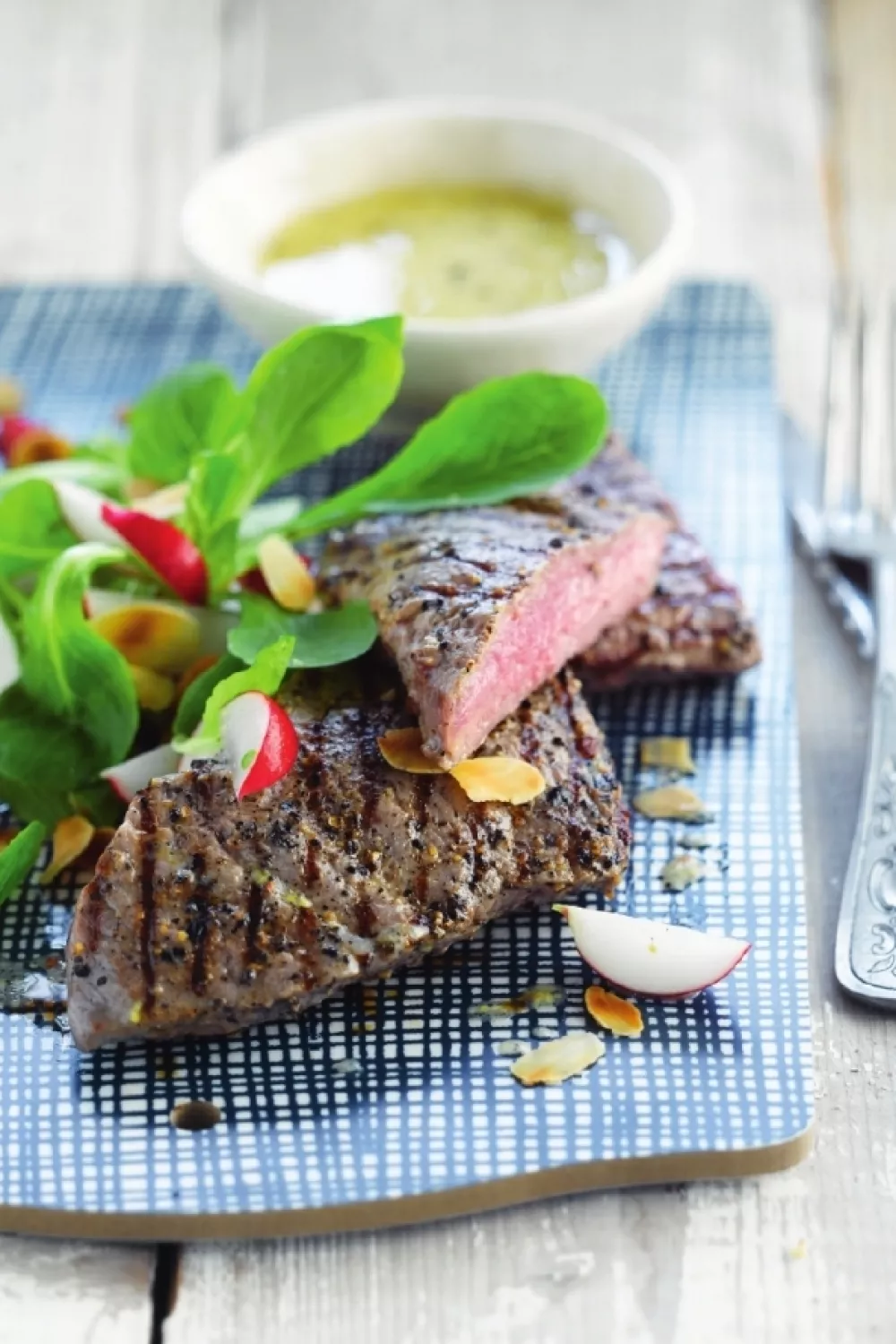 Malse gegrilde paardenfilet met frisse veldsla, knapperige radijsjes en geroosterde amandelschilfers is een elegante maar toegankelijke hoofdschotel voor diners in lente en zomer. Een romige karnemelkdressing van graanmosterd, sinaasappelsap en honing geeft een subtiele zoetzuur toets, terwijl kort grillen en een korte rusttijd de filets heerlijk sappig houden. Perfect voor een feestelijk etentje of een lichte doordeweekse maaltijd.