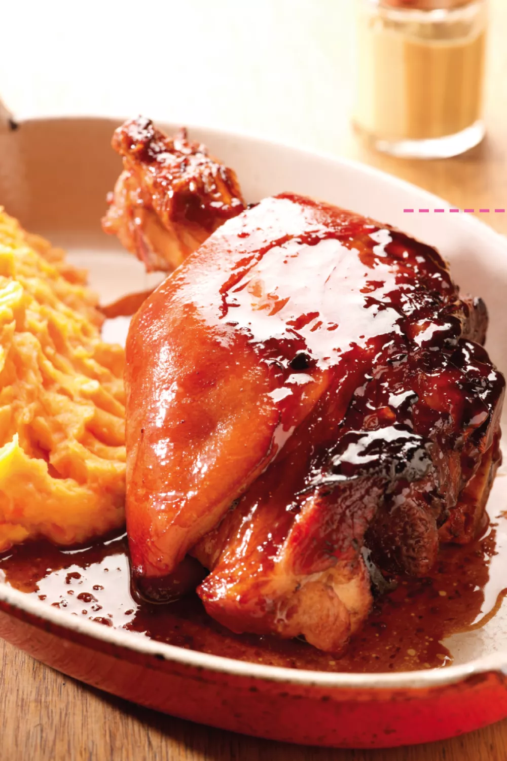 Dit klassieke hoofdgerecht combineert gepekelde hammetjes met romige wortelstoemp voor een stevige, huiselijke maaltijd. De ham wordt zachtjes gegaard en daarna geroosterd tot een goudbruine korst, geserveerd met aardappelpuree met wortel, boter en ajuin. Afgewerkt met een mosterdroomsaus en aromatische tijm en laurier is het ideaal voor een familiediner in herfst en winter.