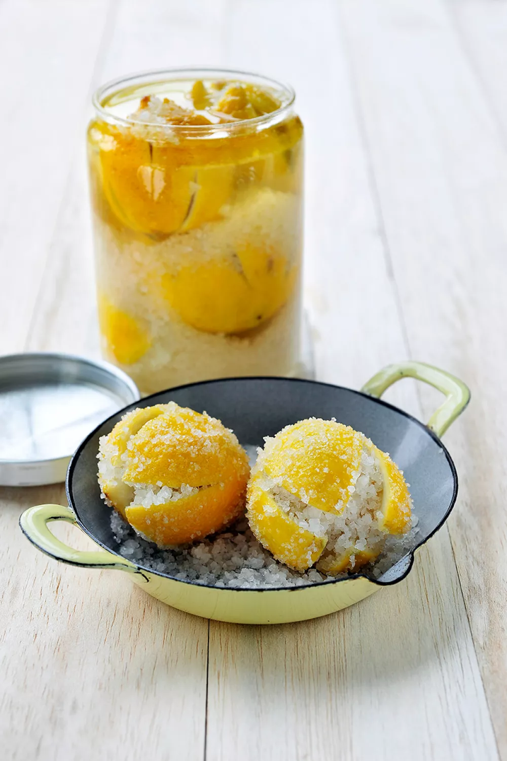 Zachte gepekelde citroenen met zeezout en olijfolie geven gerechten uit de Maghreb en de mediterrane keuken een intense, frisse en zoute smaak. De eenvoudige pekeltechniek in een bokaal verdiept de aroma's en maakt ze perfect voor tajines, couscous, salades of gegrilde vis. Maak meteen een voorraad zodat je het hele seizoen kunt variëren met vinaigrettes en stoofpotten.