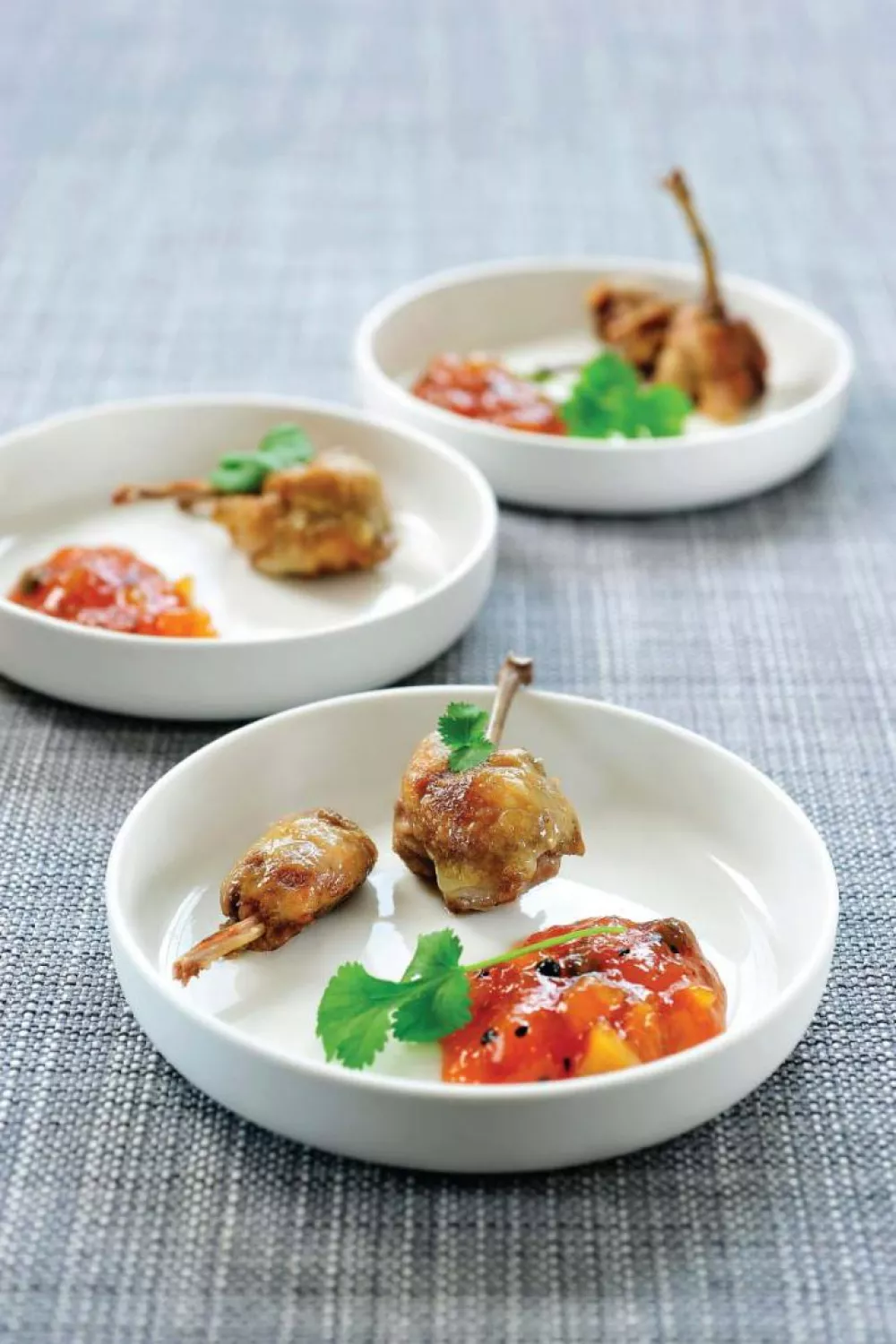 Serveer de kwartelboutjes samen met de chutney als dipsaus.