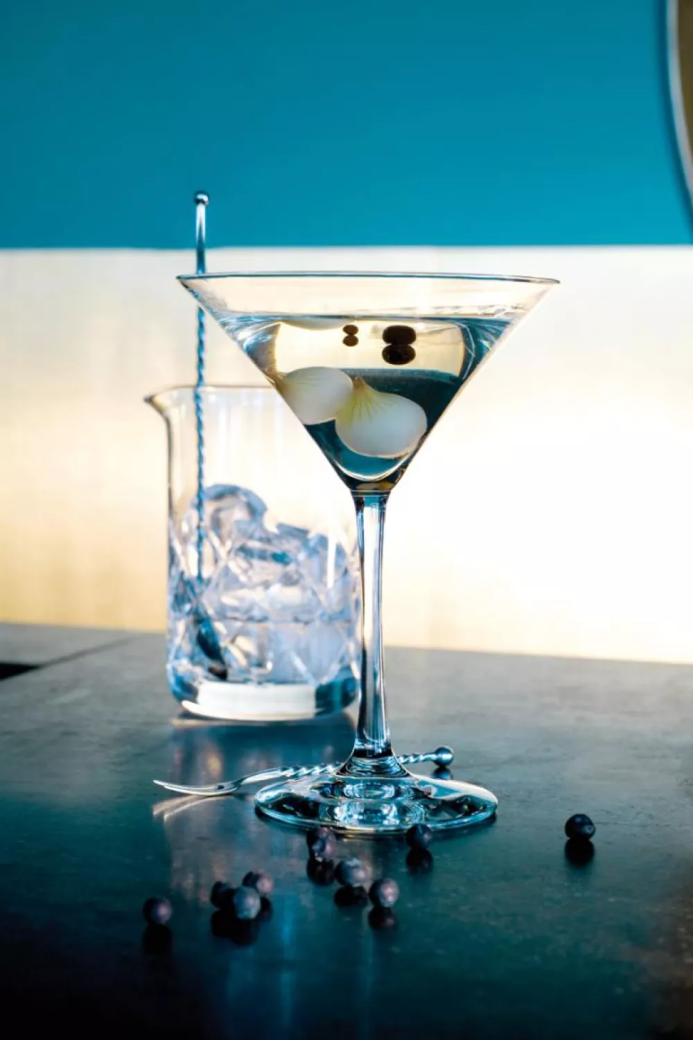 Werk af met twee cocktailuitjes. Indien gewenst kan je enkele jeneverbesjes uit de marinade van de opgelegde zilveruitjes erbij serveren