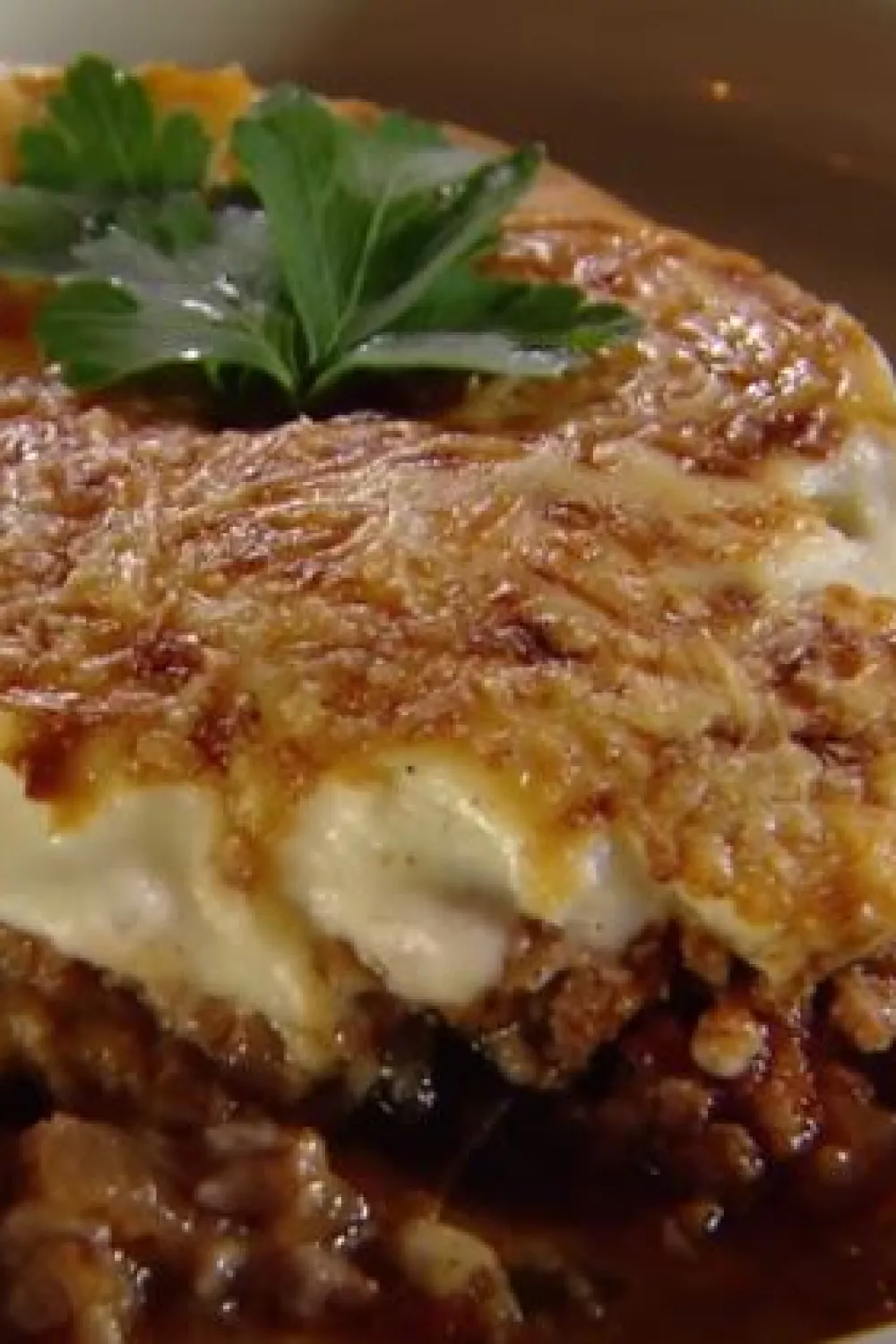 Romige Griekse moussaka met krokant gebakken aubergine en zachtgaar gesneden aardappel, rijk gevuld met gehakt van varken en rund en overgoten met een fluweelzachte bechamelsaus. Deze hartige ovenschotel verenigt mediterraanse smaken van tomaat, oregano en peterselie met het werk van frituren en laagjes stapelen, afgewerkt met een goudbruine gratin in de oven. Ideaal als troostrijk familiediner op koude avonden of als feestelijk hoofdgerecht.