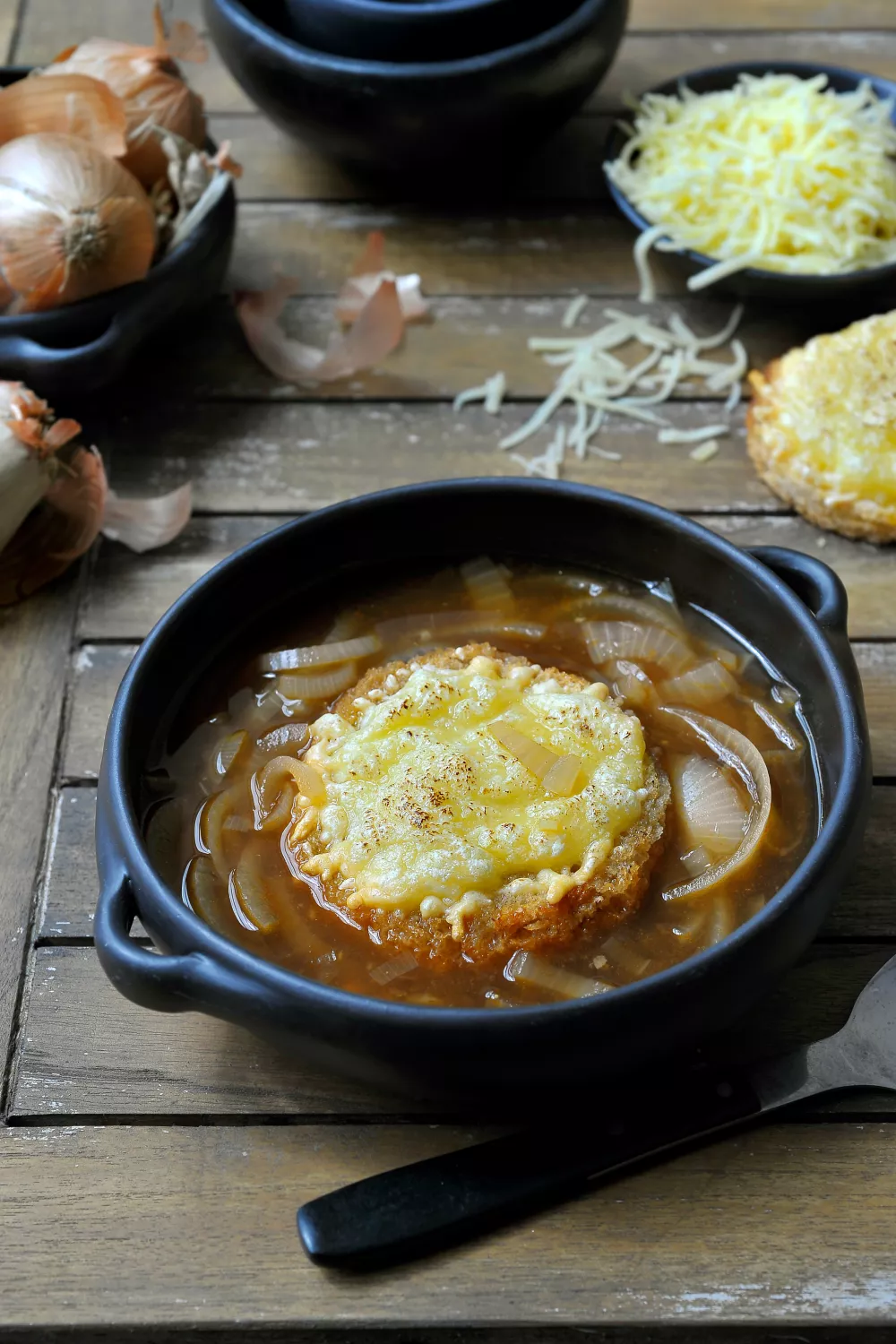 Deze heldere uiensoep combineert dun gesneden uien met diepe rundsbouillon tot een smaakvolle, lichte soep. Een krokant toastje met boter en gesmolten gruyère vormt daarbovenop een onweerstaanbare hartige gratin. Makkelijk te bereiden en ideaal als verwarmend voorgerecht of gezellige maaltijd op koude dagen.
