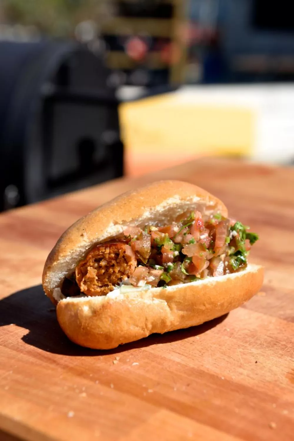 Hotdog met baba ghanouch