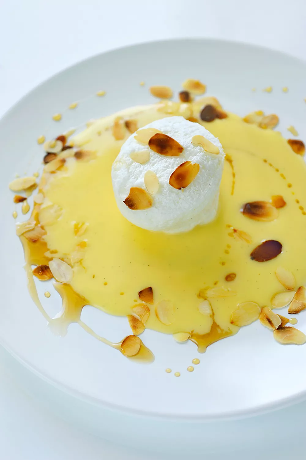 Luchtige ile flottante op een romige crème anglaise, gemaakt van gestoomd eiwitschuim, volle room en opgeklopte dooiers met echte vanille. Geroosterde amandelschilfers en een drup vloeibare acaciahoning geven een knapperige en honingzoete toets. Dit elegante Franse dessert past zowel bij een feestelijk diner als bij een zomerse of winterse afsluiter.