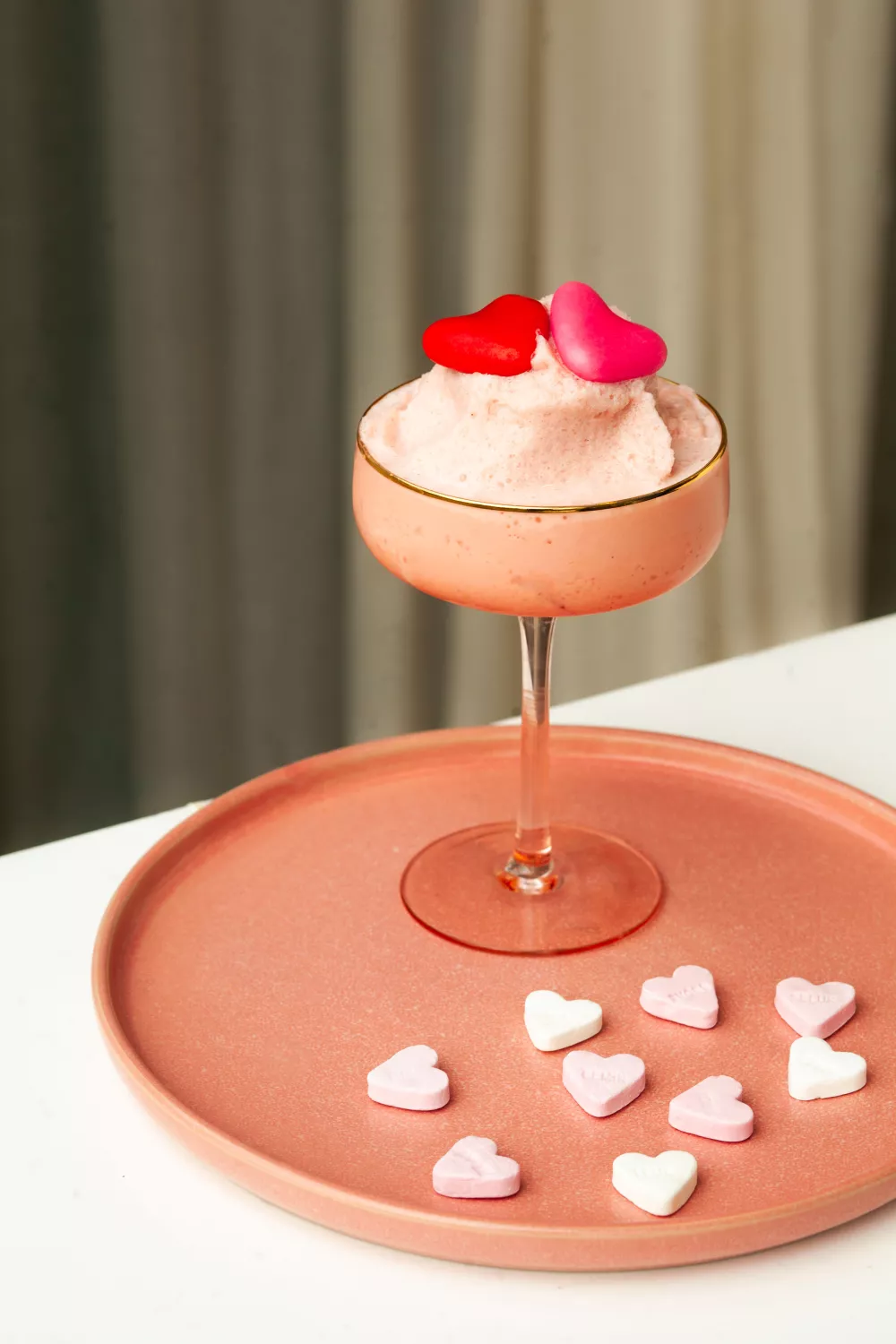 Deze Kiss Me mocktail combineert zoete aardbeien, romig vanille-ijs en een scheut aardbeiensiroop tot een frisse, vrolijke traktatie voor zomerse dagen of een intiem feestje. In de blender worden de ingrediënten in een handomdraai omgetoverd tot een fluweelachtige, alcoholvrije cocktail die jong en oud zal bekoren. Werk af met hartjessnoepjes voor een speelse, feestelijke touch.