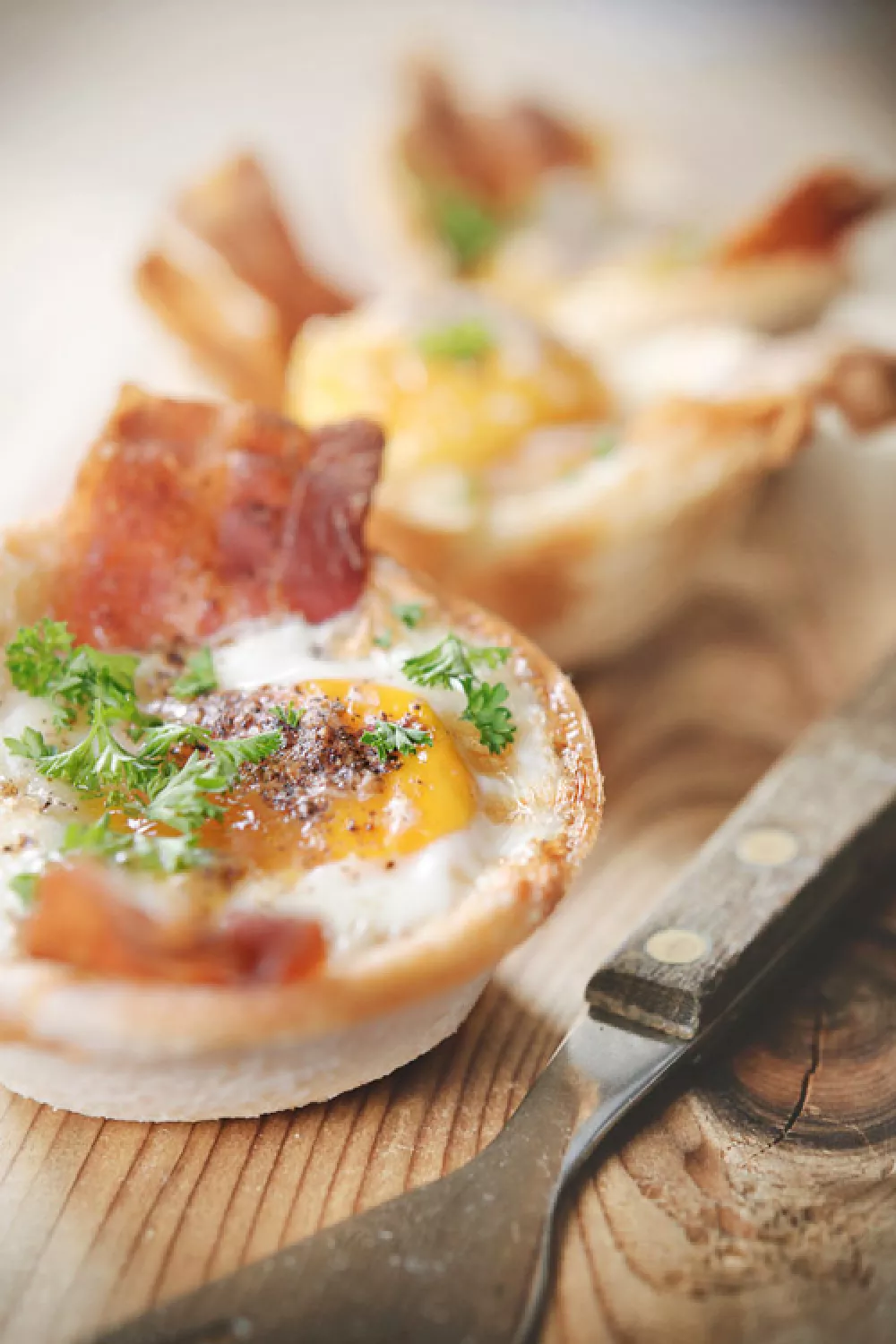 Stappenplan om recept “Knapperige ontbijtcups met spek en een eitje” te bereiden