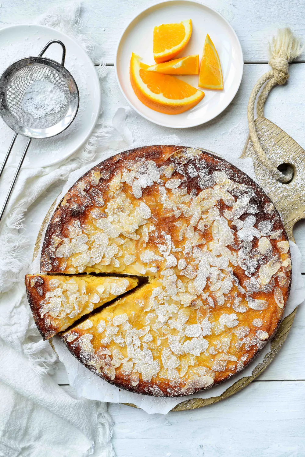 Deze koolhydraatarm cake met amandel en sinaasappel combineert frisse citrus met een nootachtige, smeuïge structuur door amandelmeel en losse eieren. De sinaasappels worden zacht gegaard en met schil gepureerd tot een volle mousse die het beslag extra diepte geeft, en bovenop zorgt amandelschaafsel voor een knapperig accent. Perfect als licht dessert, bij de koffie of als feestelijke brunchoptie dankzij de suikervervanger en pure ingrediënten.