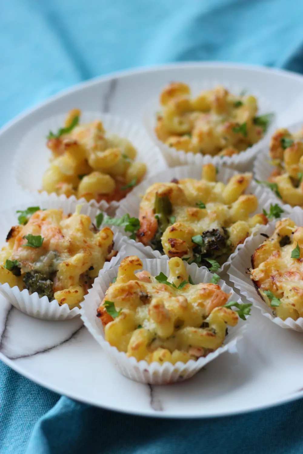 Romige macaronimuffins met gerookte zalm en broccoli zijn een ideaal hartig hapje voor lunch, borrel of een gezellige doordeweekse maaltijd. Een zijdezachte bechamelsaus met gesmolten kaas bindt de macaroni terwijl panko zorgt voor een krokant korstje tijdens het bakken in de oven. Heerlijk als feestelijke snack, picknickgerecht of comfort food in elk seizoen.