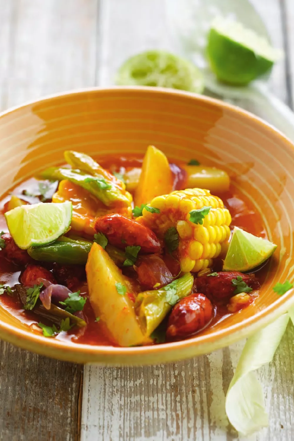 Dit robuuste maïsstoofpotje combineert zoete maïs en pittige chorizo met zachte krielaardappelen en rijpe tomaat voor een hartige, troostrijke maaltijd. Het langzaam sudderen in groentebouillon laat smaken versmelten terwijl komijn, chili en limoen frisse kruidigheid toevoegen. Perfect als doordeweekse comfortmaaltijd of voor een informele herfsttafel, afgemaakt met koriander en partjes limoen.