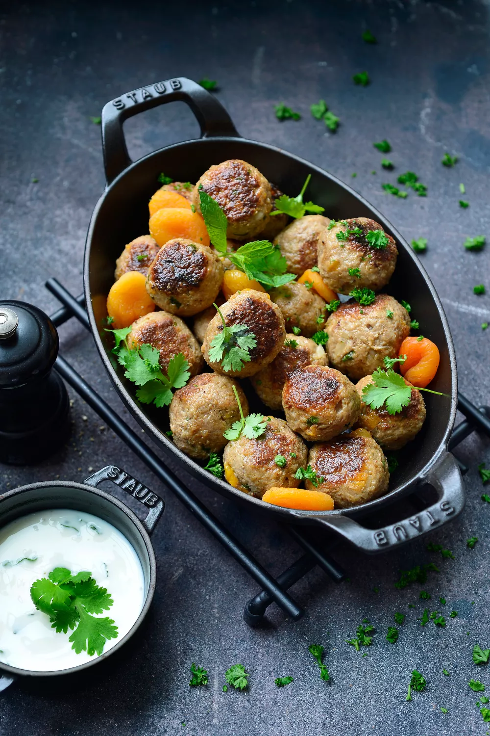 Marokkaanse gehaktballen met abrikoos, munt en koriander