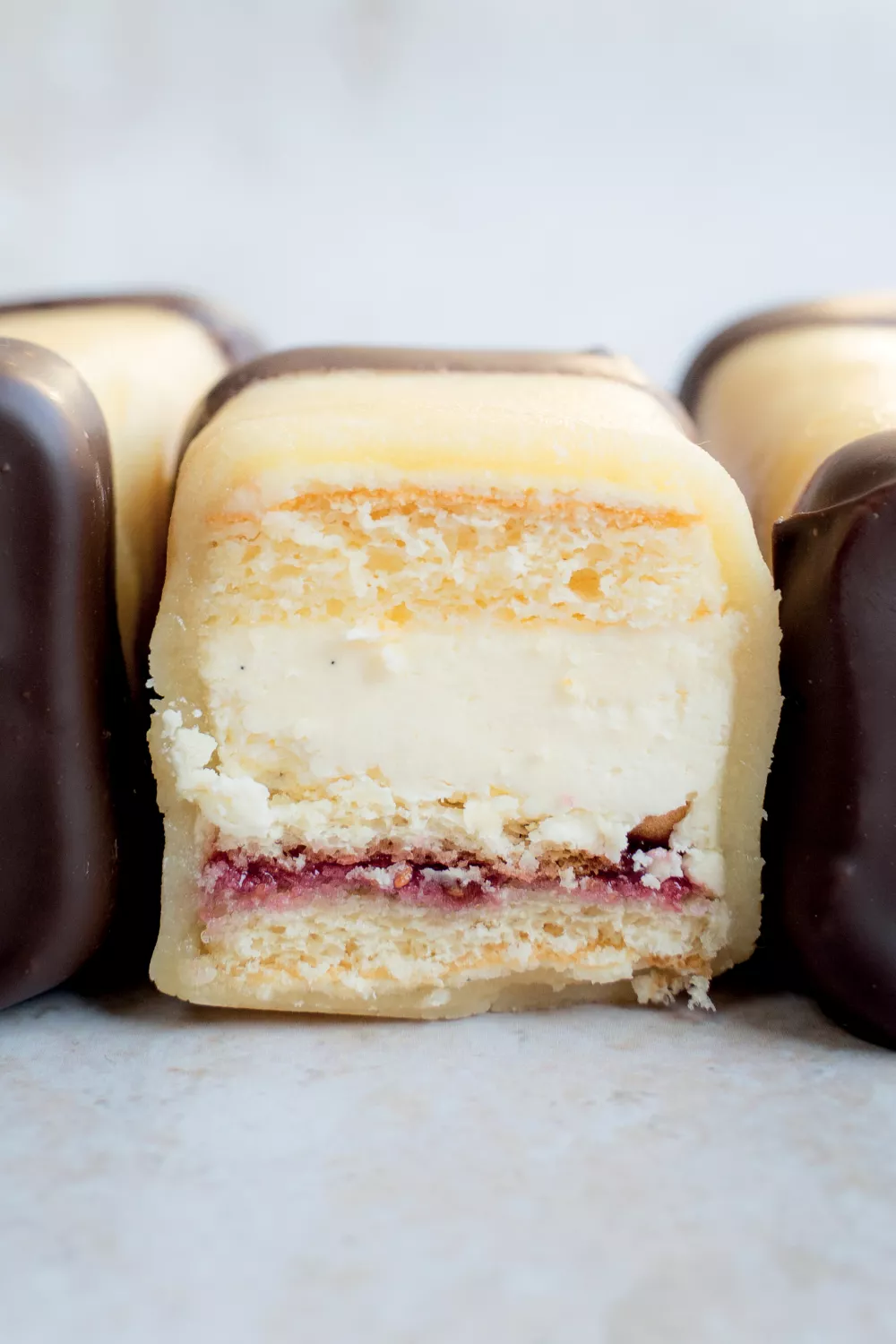 Mergpijpjes met zachte marsepein en pure chocolade vormen een verfijnd en feestelijk patisseriegerecht met rijke amandel- en chocoladetonen. Luchtige biscuitlagen gevuld met frambozenjam, trempé in Marasquin en omhuld door romige banketbakkersroom en botercrème worden strak opgebouwd, vervolgens rol je ze in dun marsepein en doop je de uiteinden in getemperde chocolade au bain marie. Perfect als elegant dessert bij koffie, voor verjaardagen of tijdens feestelijke wintermaanden.