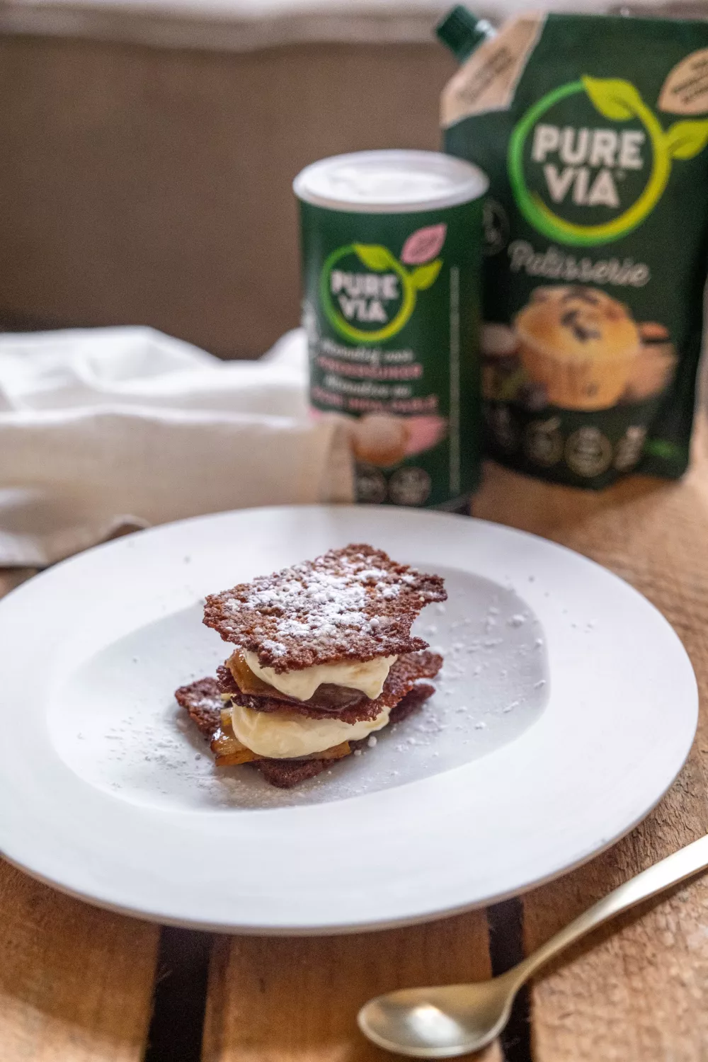 Deze luchtige millefeuille van krokant geroosterde peperkoek, romige mascarponemousse en zacht gekaramelliseerde appel brengt warme specerijen samen met frisse zuivel voor een elegant dessert. De suikervervanger houdt het zoet subtiel terwijl luchtig kloppen en opstijven van de mousse zorgt voor een fluweelzachte textuur en de geroosterde peperkoek knapperigheid geeft. Ideaal als feestelijk nagerecht of winterse traktatie.
