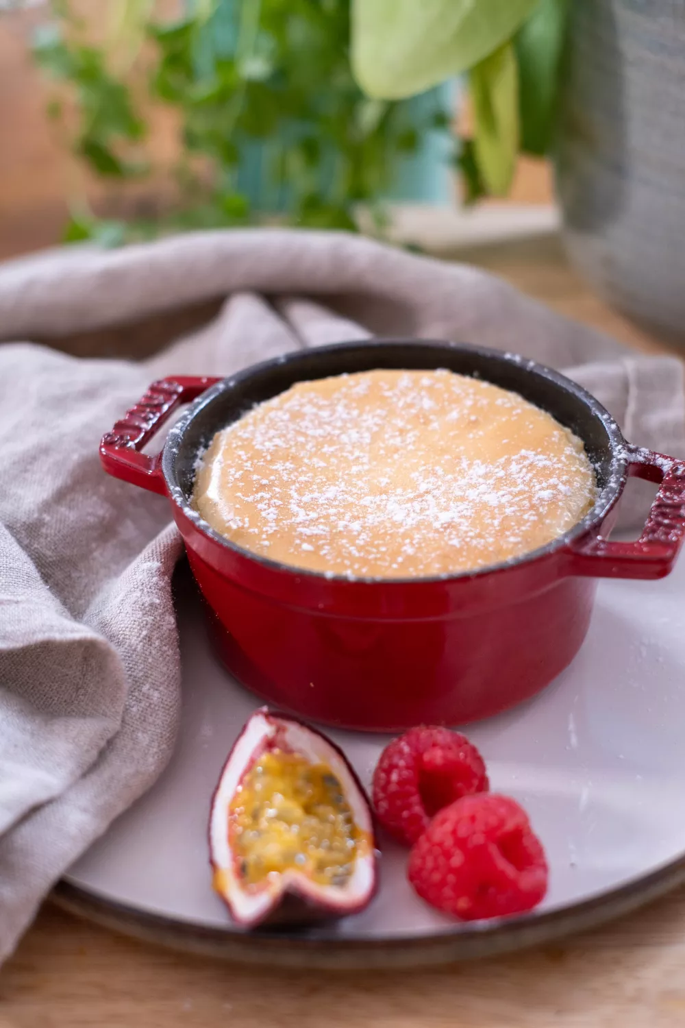 Werk af met poedersuiker en vers fruit. Serveer onmiddellijk.