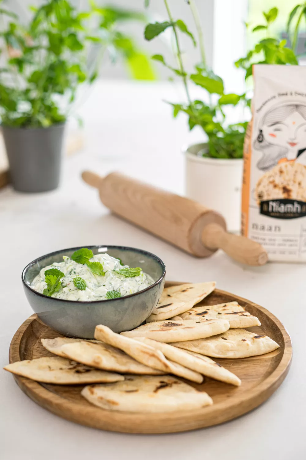 Zacht en licht gekruide naanbroodjes, goudbruin gebakken in de pan, met een frisse tzatziki van geraspte en uitgelekte komkommer, Griekse yoghurt, munt en knoflook. Dit makkelijk te maken borrelbrood is perfect voor een zomerse picknick, barbecue of gezellige mezzeavond. Met simpel kneden, korte rijs en snel bakken zet je huisgemaakt brood en een koele dip op tafel.