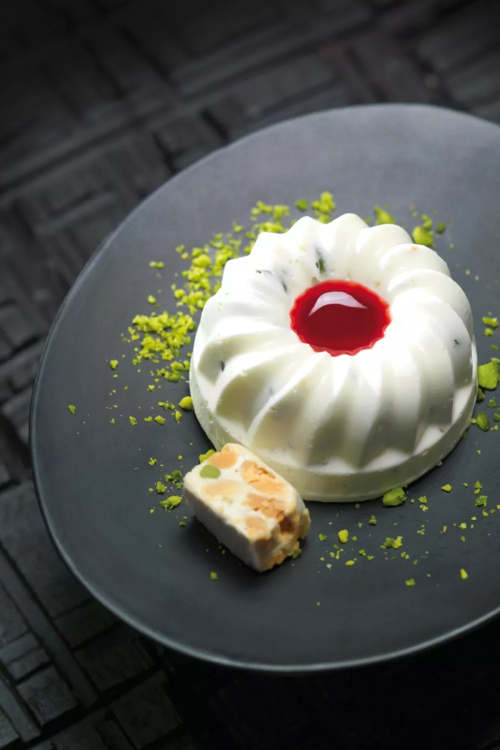 Romige nougat glacé met krokante stukjes nougat, geroosterde pistachenoten en macadamia combineert rijke amandelhoning met luchtige room en Italiaanse meringue voor een luxe bevroren dessert. Het vraagt om het opwarmen van suikersiroop en het luchtig kloppen van eiwitten voordat alles wordt ingevroren tot stevige schepbare taartjes. Serveer met frisse aardbeiencoulis voor een zomerse en feestelijke toets.