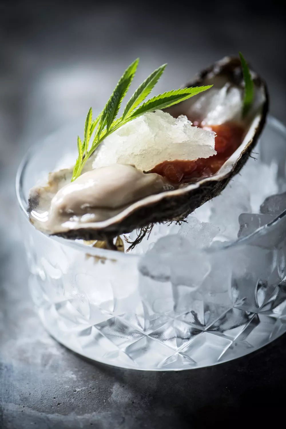 Frisse oesters met een Margaritaachtige granité van mescal, tequila, triple sec en limoen zorgen voor een ijskoud en zilt contrast. Een warme salsa van chipotle, jalapeño, sjalot en tomaat geeft rokerige diepte en een milde pit. Ideaal als feestelijk voorgerecht of zomerse borrelamuse.