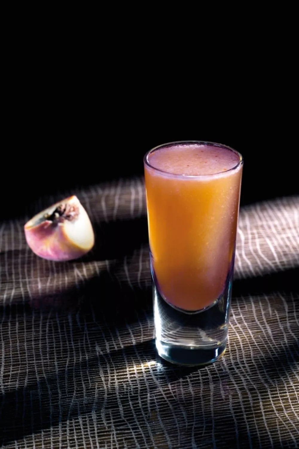 Zomerse, fluwelige cocktail waarin cognac en Southern Comfort samenkomen met het sappige vruchtvlees van een witte perzik voor een zacht fruitige smaak. Het mengsel wordt krachtig geshaked met gepileerd ijs zodat de perzik volledig tot sap wordt en daarna gezeefd in een tumblerglas. Perfect als aperitief bij late zomeravonden; wie van iets zoeter houdt voegt een scheutje suikerwater toe.