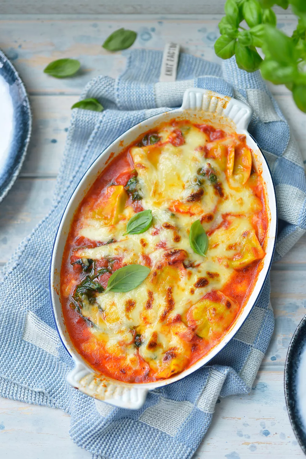 Ovenschotel met ravioli, mozzarella en spinazie