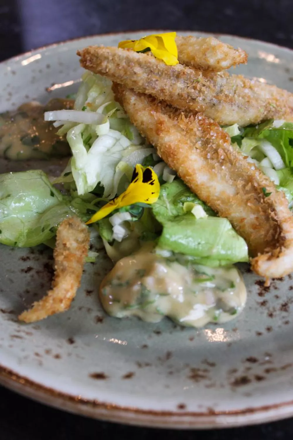 In panko gepaneerde pladijsfilets met gribiche saus