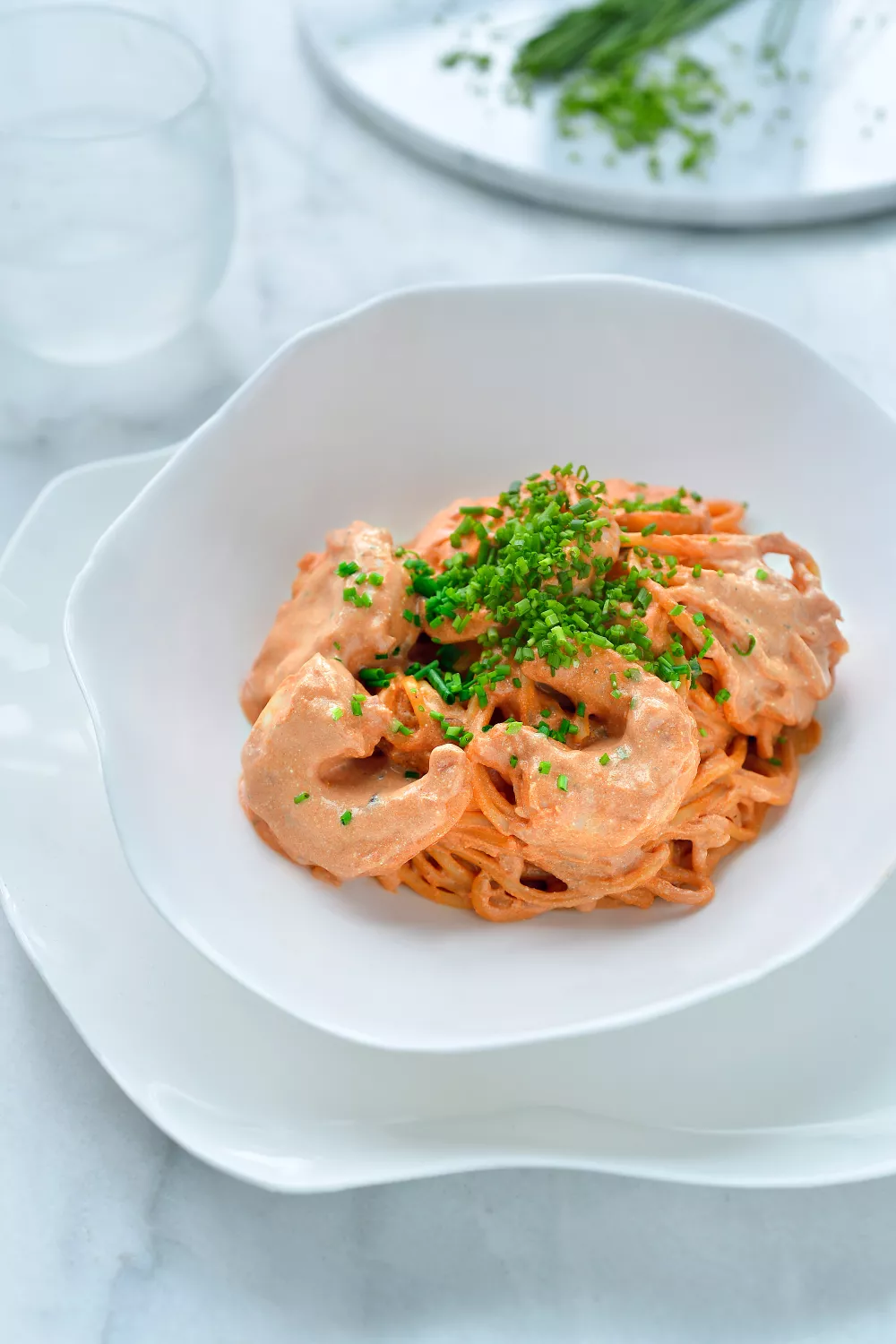 Stappenplan om recept “Pasta met scampi in tomatenroomsaus” te bereiden