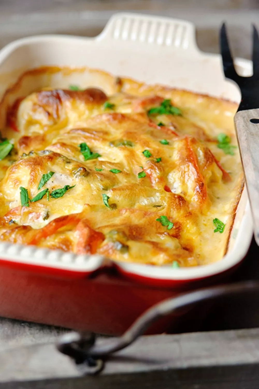 Deze pittige kip met jalapeño en gesmolten cheddar is een romige, ovengebakken ovenschotel vol zachte kipfilets, zoete paprika en een rijke kaassaus met mosterd en nootmuskaat. Het recept combineert snel aanfruiten en gratineren in de oven voor veel smaak met weinig moeite. Perfect als doordeweeks diner of feestelijke borrelhap.
