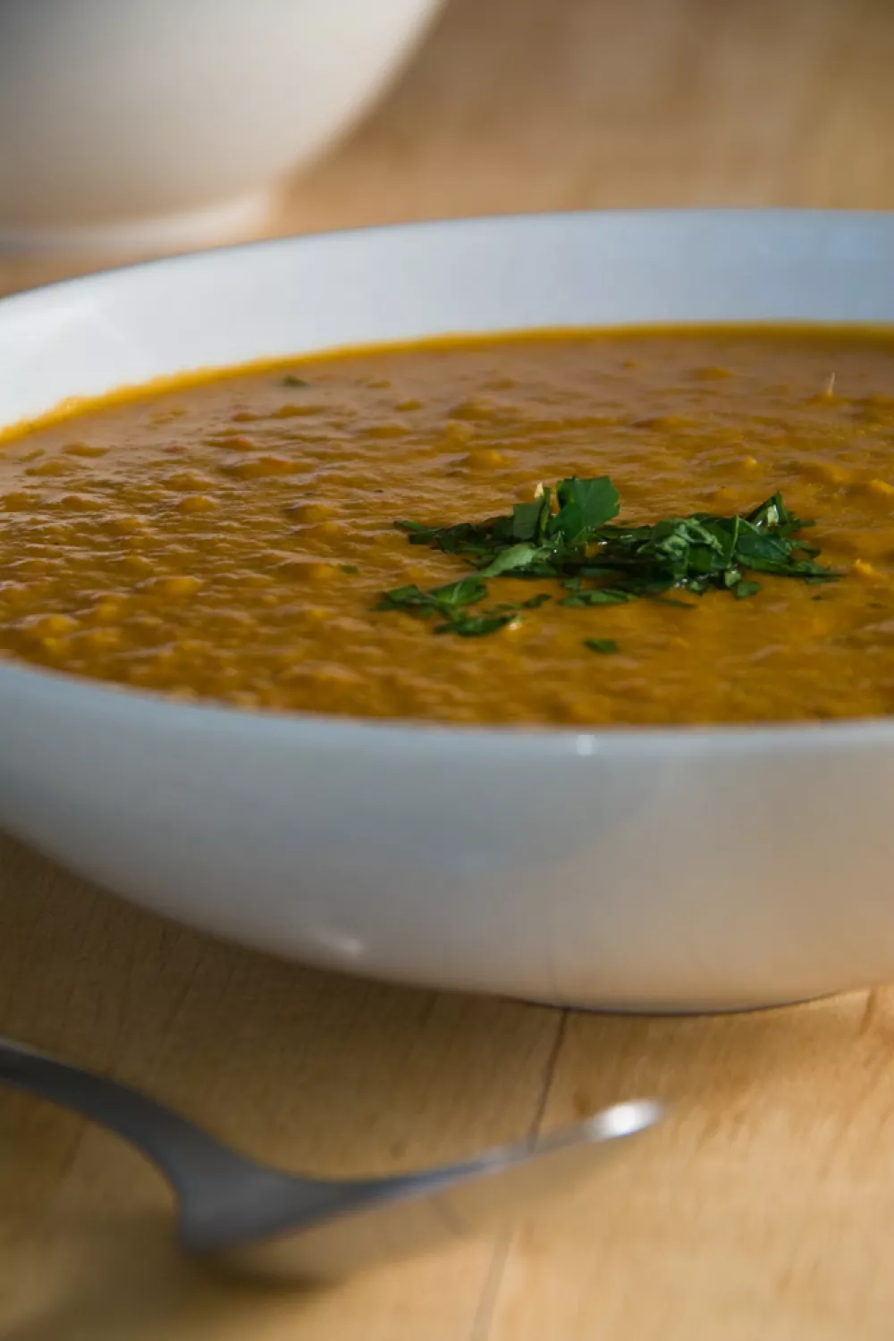 Deze pittige rode linzensoep is puur comfortfood voor koude dagen: romig zonder room, vol ui, knoflook, gember en rode peper in geurige kippenbouillon. De linzen pruttelen zacht gaar, daarna geef je een Indiase twist met een sissende kruidenolie van sesamolie, garam masala, komijn en gepofte mosterdzaadjes. Perfect als snelle doordeweekse maaltijd of verwarmende lunch, afgewerkt met een frisse toets citroen.