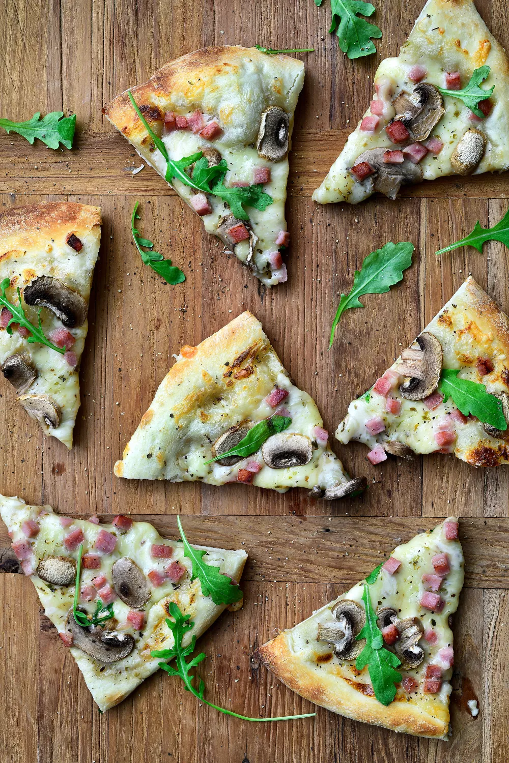 Stappenplan om recept “Pizza met ham, champignons en truffelcrème” te bereiden