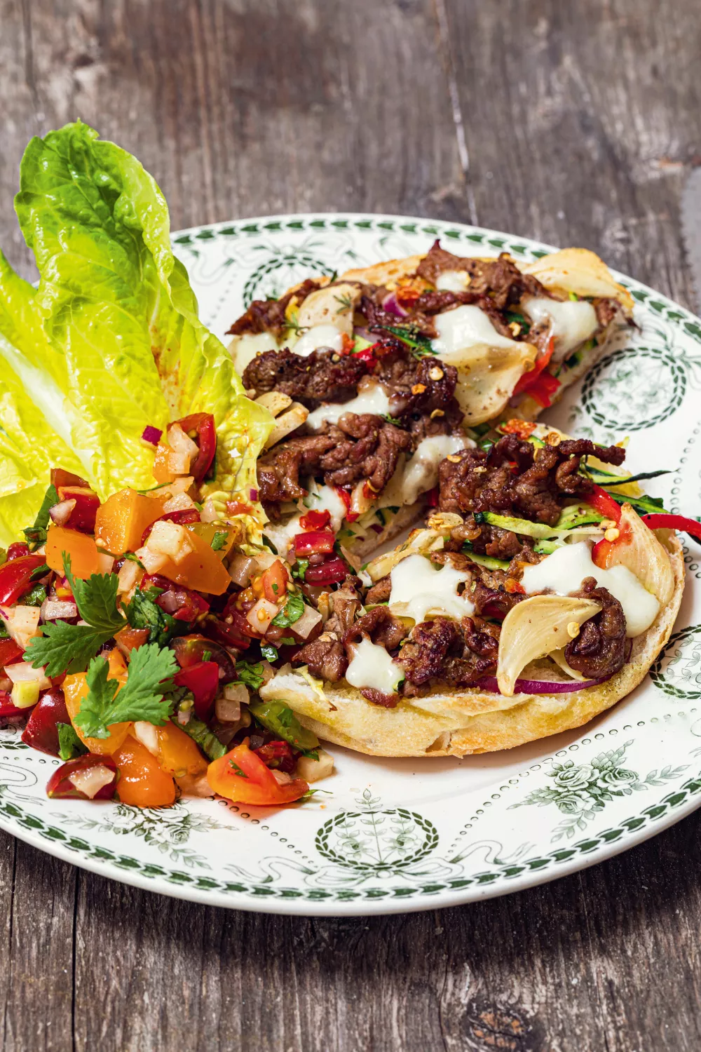 Deze Oosterse fusion pizza op Turks brood combineert malse ribeye en pittige daikon kimchi met romige burrata en amberzoete gefermenteerde knoflook voor een rijke umamibeleving. Het vlees wordt kort gemarineerd en geroerbakt waarna het brood in de oven krokant wordt gebakken, wat zorgt voor een knapperig en hartig resultaat. Ideaal om te delen tijdens een informele avond of bij zomerse borrels.