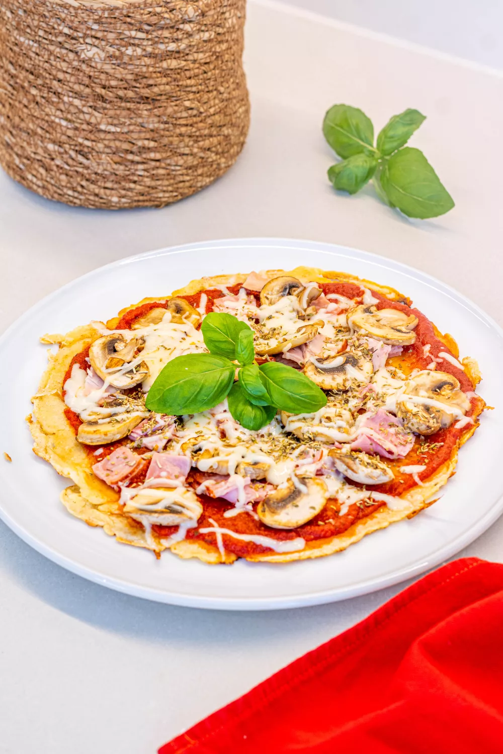 Een luchtige pannenkoek met passata, gesmolten mozzarella, ham en champignons vangt de herkenbare smaak van pizza in één pan. Het eenvoudige beslag van ei, melk en bloem en het korte bakken maken dit recept ideaal als snelle lunch of gezellige doordeweekse avondmaaltijd. Afgewerkt met Provençaalse kruiden en verse basilicum is het een hartig comfortgerecht dat het hele jaar door werkt.