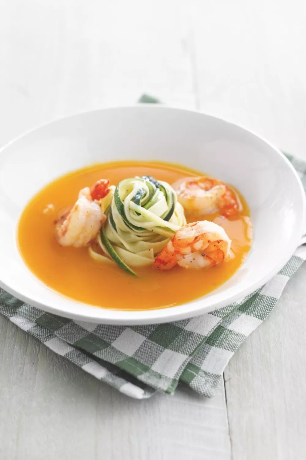 Stappenplan om recept “Pompoensoepje met tagliatelle van courgette en scampi’s” te bereiden