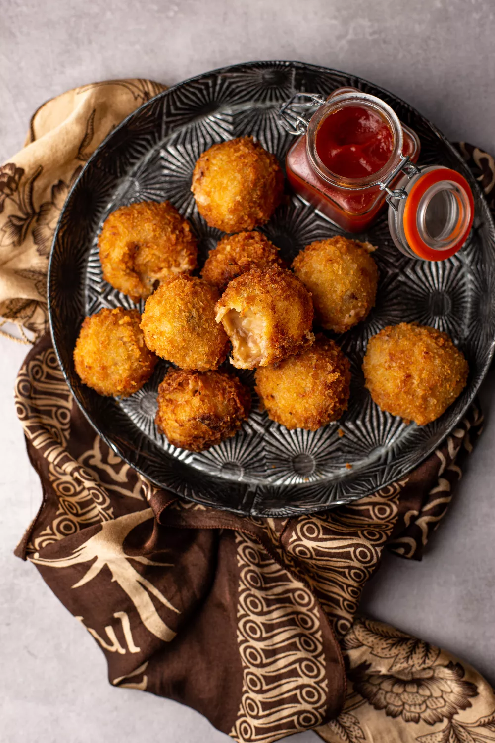 Deze pulled pork bitterballen combineren smeuïge ragout van langzaam gegaard varkensvlees met een rokerige paprikasmaak en knapperige panko korst, ideaal als borrelhap of feestelijke snack. De ragout wordt gebonden met gelatine en slagroom, vervolgens gepaneerd en goudbruin gefrituurd voor maximale crunch. Perfect bij een barbecue, winterse borrel of gezellige borrelavond met vrienden.