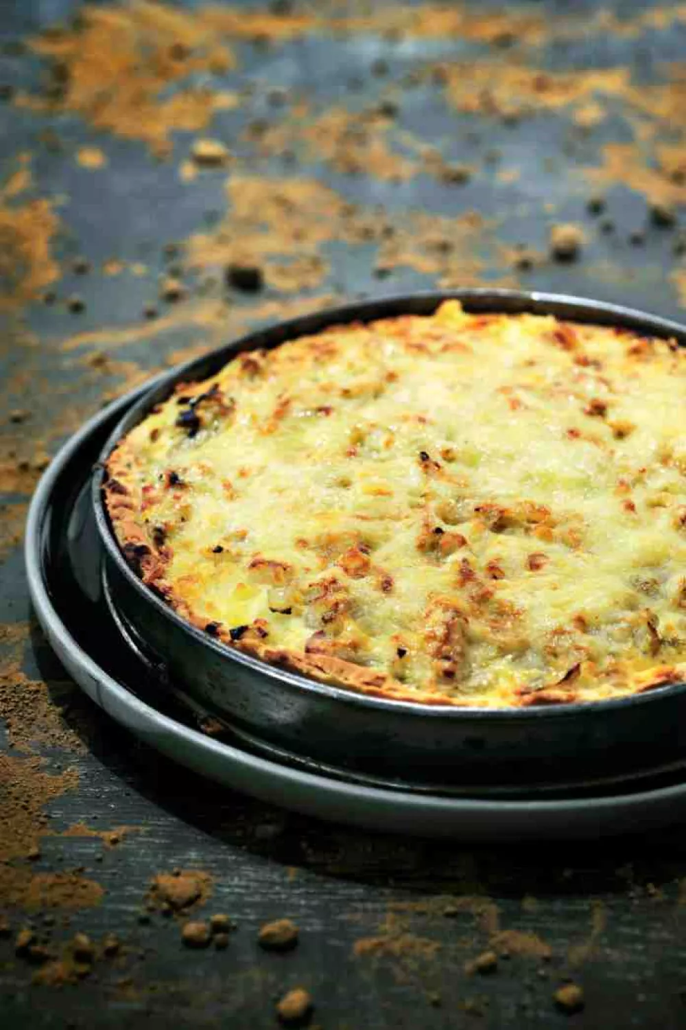 Een hartige quiche met stoofwitloof, krokante stukjes gerookt spek en zacht gegaarde aardappelblokjes brengt Belgische comfortfood naar je tafel. Het zanddeeg wordt blindgebakken voor een knapperige bodem terwijl een romig eimengsel van room en melk alles samenbindt tot een smaakvolle vulling met een vleugje nootmuskaat. Ideaal voor een herfstige brunch, weekendlunch of gezellige avondmaaltijd.