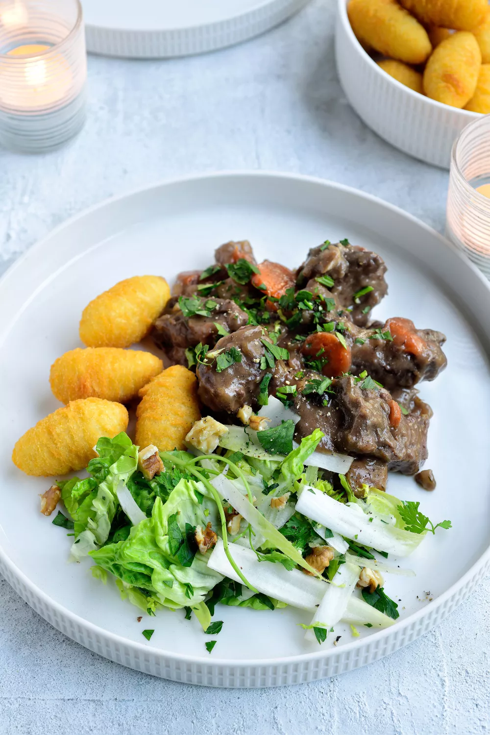 Stappenplan om recept “Ragout van hinde met witloofsalade en kroketten” te bereiden